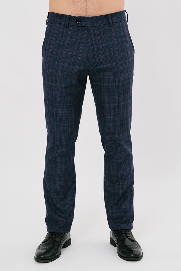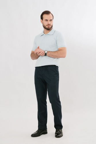 Брюки в классическом стиле. Силуэт приуженный книзу на 1,5 см. Детали спереди: застежка на молнию и пуговицу, шлевки на поясе, боковые карманы с отрезным бочком, с правой стороны карман для мелочи. Сзади два прорезных кармана в рамке, которые застегиваются на пуговицу.