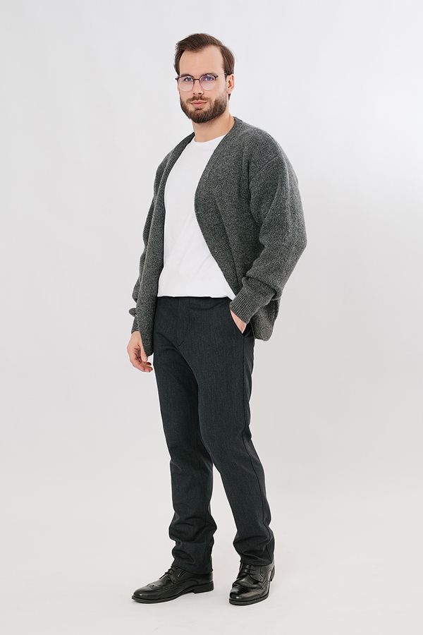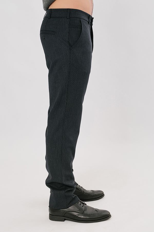 Брюки в классическом стиле. Силуэт приуженный книзу на 1,5 см. Детали спереди: застежка на молнию и пуговицу, шлевки на поясе, боковые карманы с отрезным бочком, с правой стороны карман для мелочи. Сзади два прорезных кармана в рамке, которые застегиваются на пуговицу.