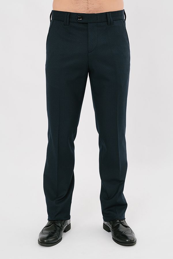 Брюки в классическом стиле со стрелками. Силуэт приуженый на 1,5 см. Детали спереди: застежка на молнию и пуговицу, двойные шлевки на поясе, боковые карманы с отрезным бочком, сзади Сзади два прорезных кармана в рамке, которые застегиваются на пуговицу.