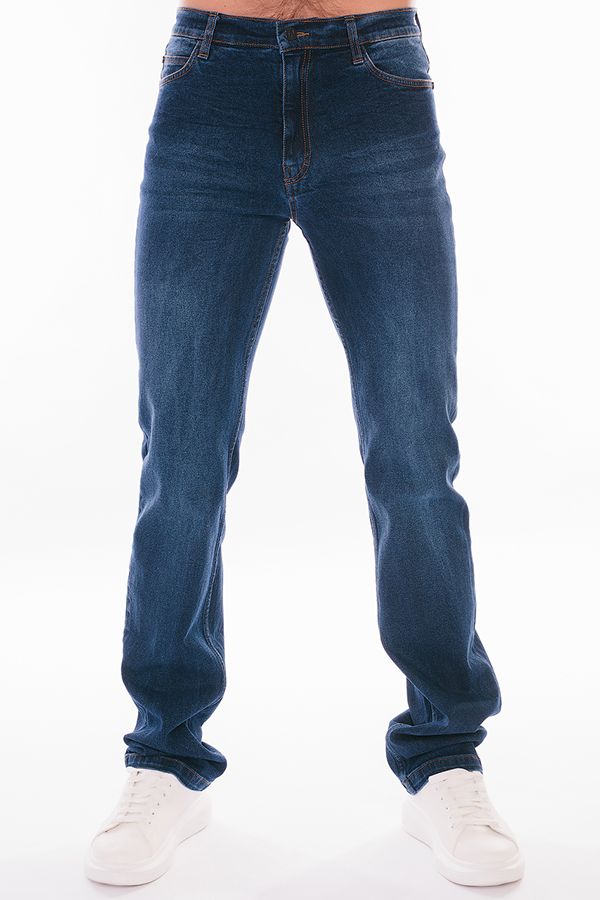 Мужские джинсы " 5 карманов" глубокого цвета темный индиго. Детали: спереди застежка на молнию и болт, боковые карманы, карман для мелочи, сзади, под кокеткой накладные карманы, на поясе шлевки. На карманах хольнитены. Длина по внутреннему шву - 88 см. Ширина по линии низа -  20,5 см. *Числовые параметры соответствуют размеру 52. Размер модели на фото: 48. Параметры модели: 100-78-105. Рост модели на фото: 181 см.