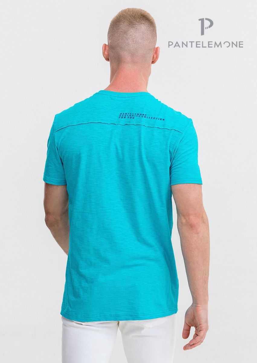 Футболка с втачным рукавом полуоблегающего силуэта с круглым вырезом горловины. Кокетка на передней детали и на спинке. На передней детали фирменная вышивка. Материал: Кулирная гладь слаб 135 г/м, гребенная пряжа (penye).