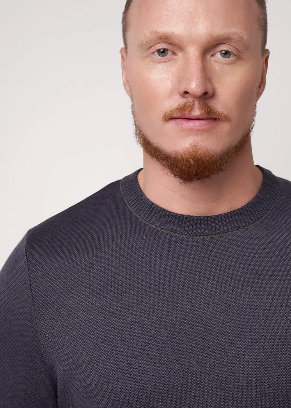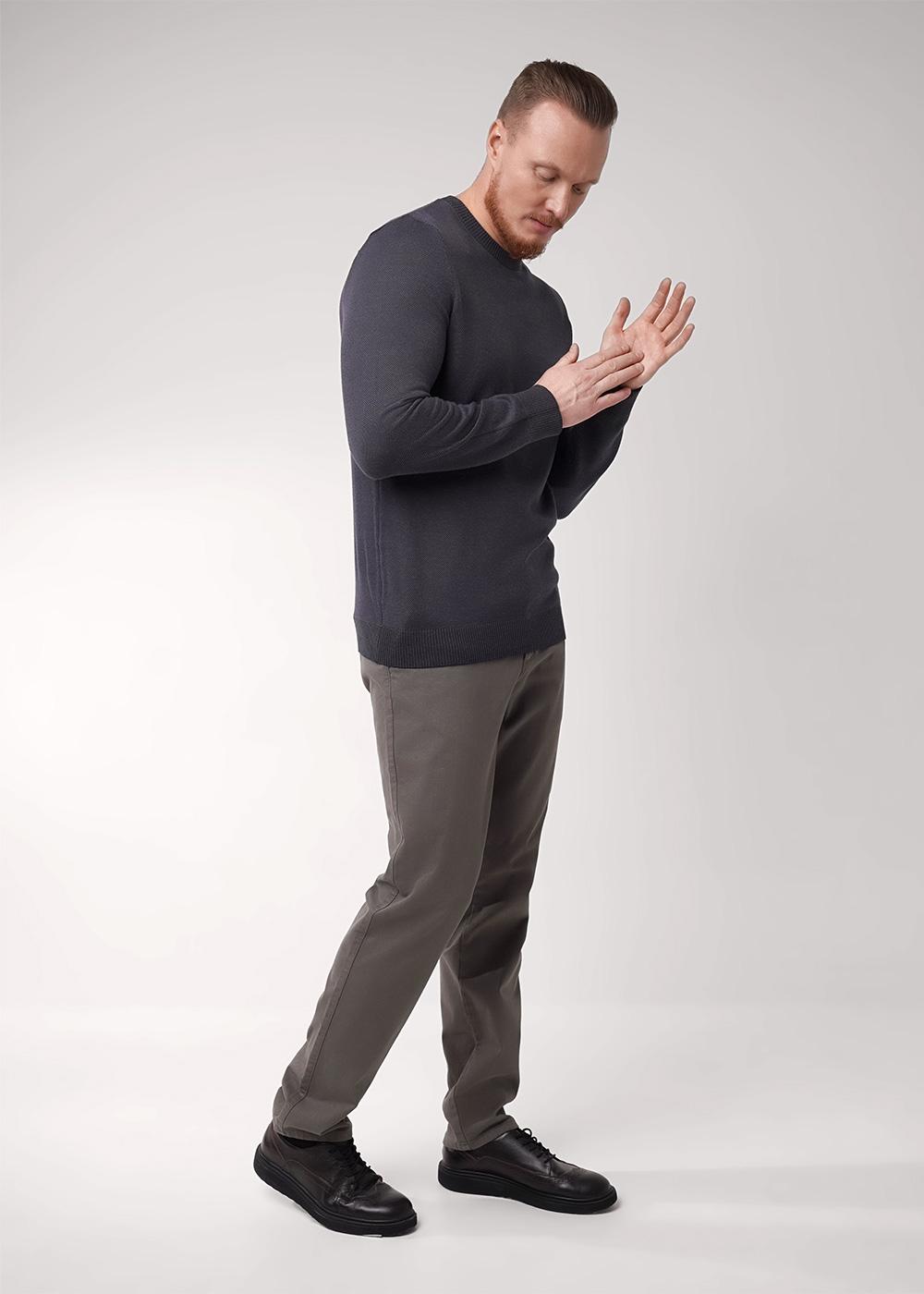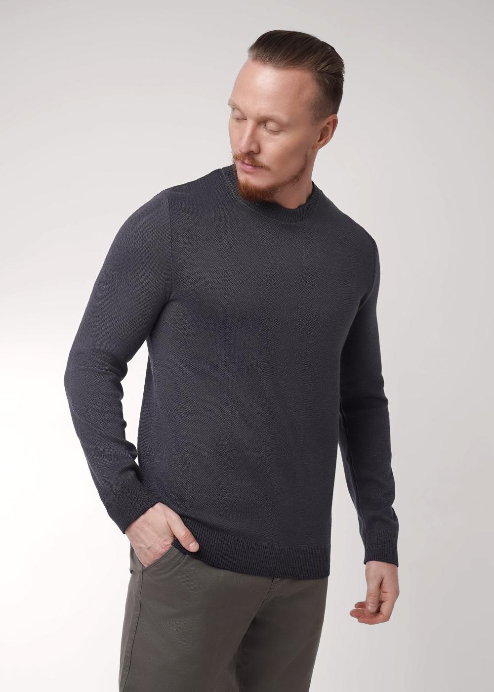 "Описание: Мужской вязаный джемпер с круглым вырезом горловины и длинным рукавом. Джемпер со смесовым составом из хлопка, в котором, несомненно, будет комфортно в течение всего дня. Хорошо сочетается с брюками и джинсами.
