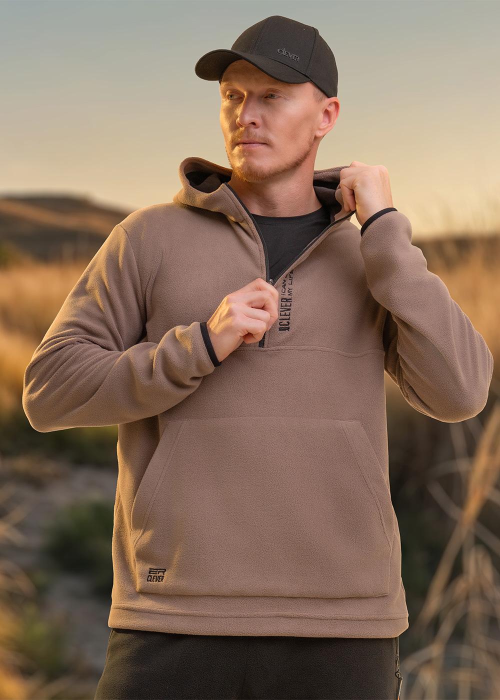 "Описание: Мужская толстовка выполнена из флиса. Модель с укороченной застежкой на молнию и вместительным карманом, так же дополнена имиджевой вышивкой. Прекрасно подойдёт для холодного времени года.