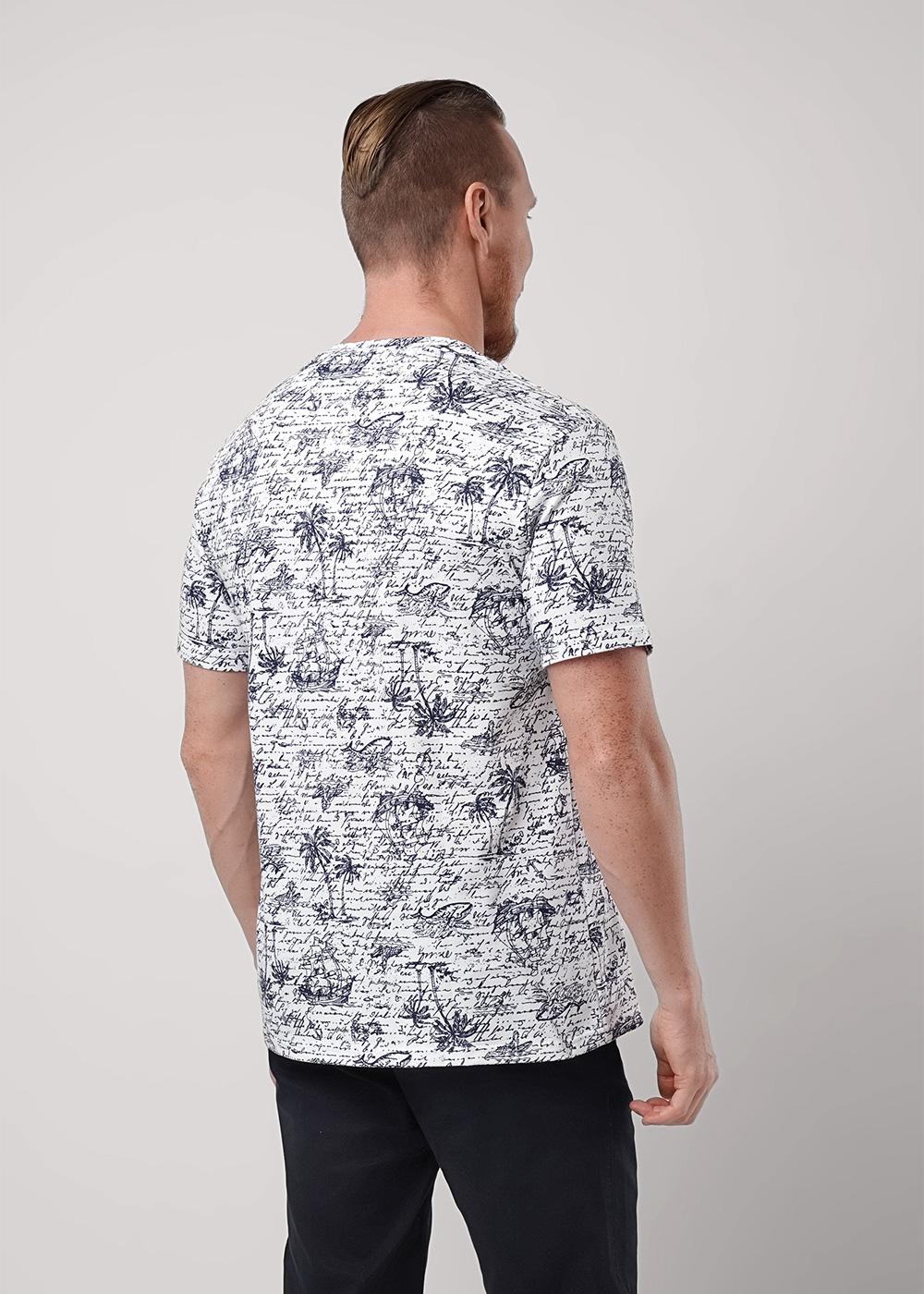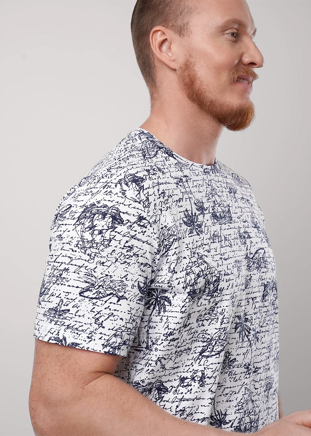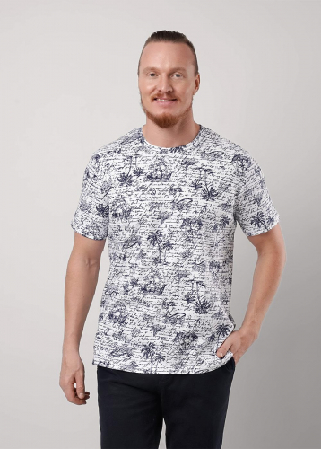 "Описание: Мужская футболка из дышащего полотна Пике с большим содержанием хлопка. С круглой горловиной и коротким рукавом. Модель дополняет дизайнерский принт и имиджевая фурнитура. Отличный вариант для повседневного образа с джинсами.