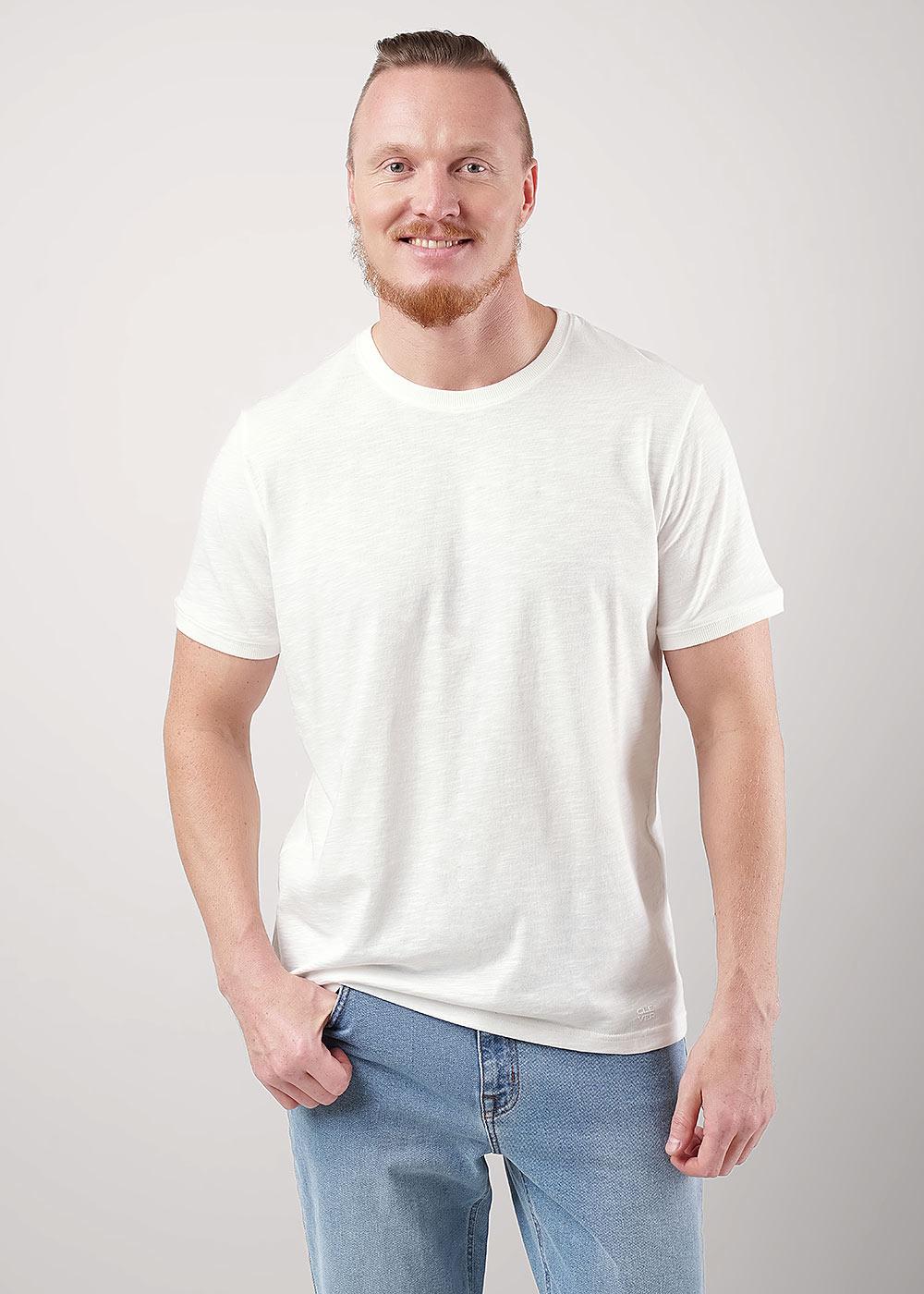 "Описание: Футболка мужская с округлой горловиной и коротким втачным рукавом из фактурного полотна флам. Изделие дополнено имиджевым принтом в цвет полотна. Данная модель прекрасно комбинируется с джинсами или шортами благодаря своей универсальности.