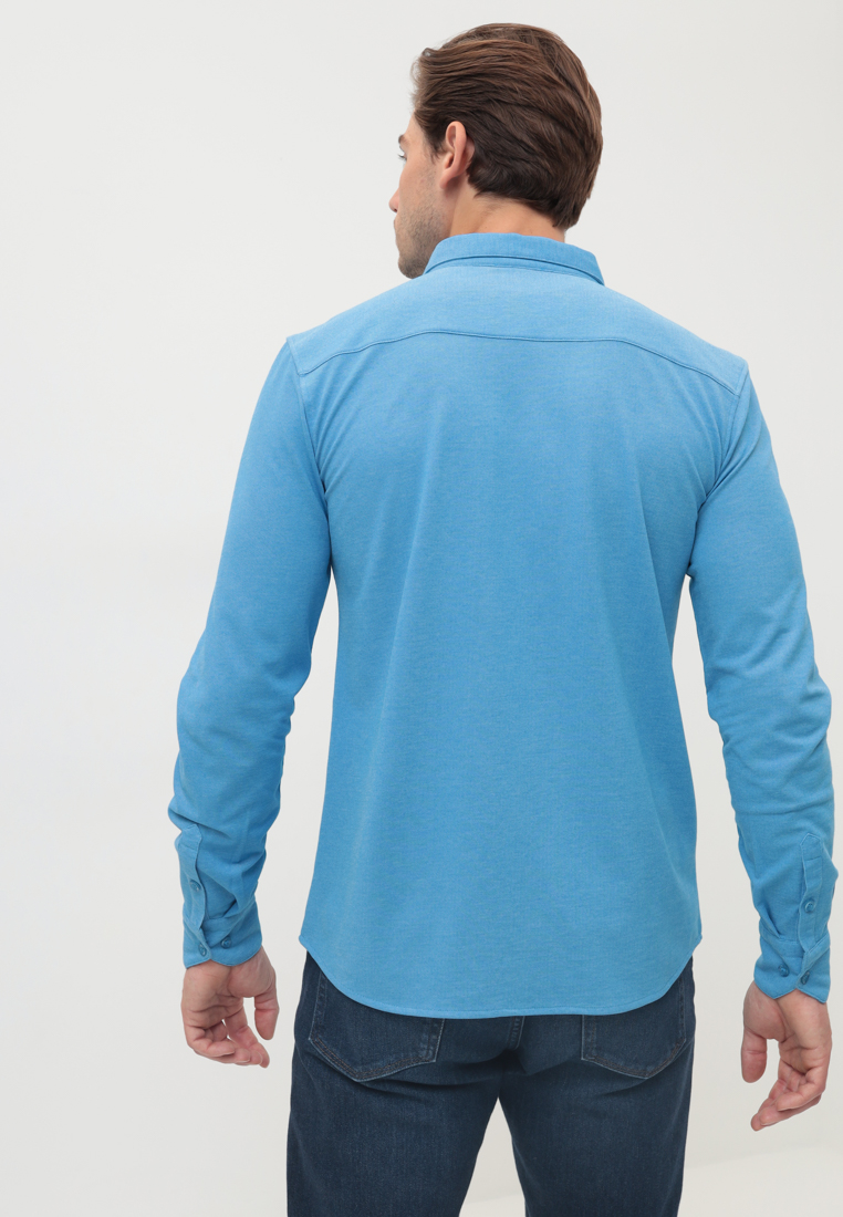 Цвет: Голубой Рисунок: Пике хамел..показатьеон Состав: 80% хлопок 20% акрил Модель: Классическая Ворот: Из основной ткани на стойке Силуэт: Прямой силуэт / Сlassic fitеон