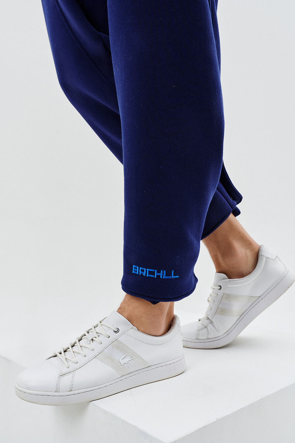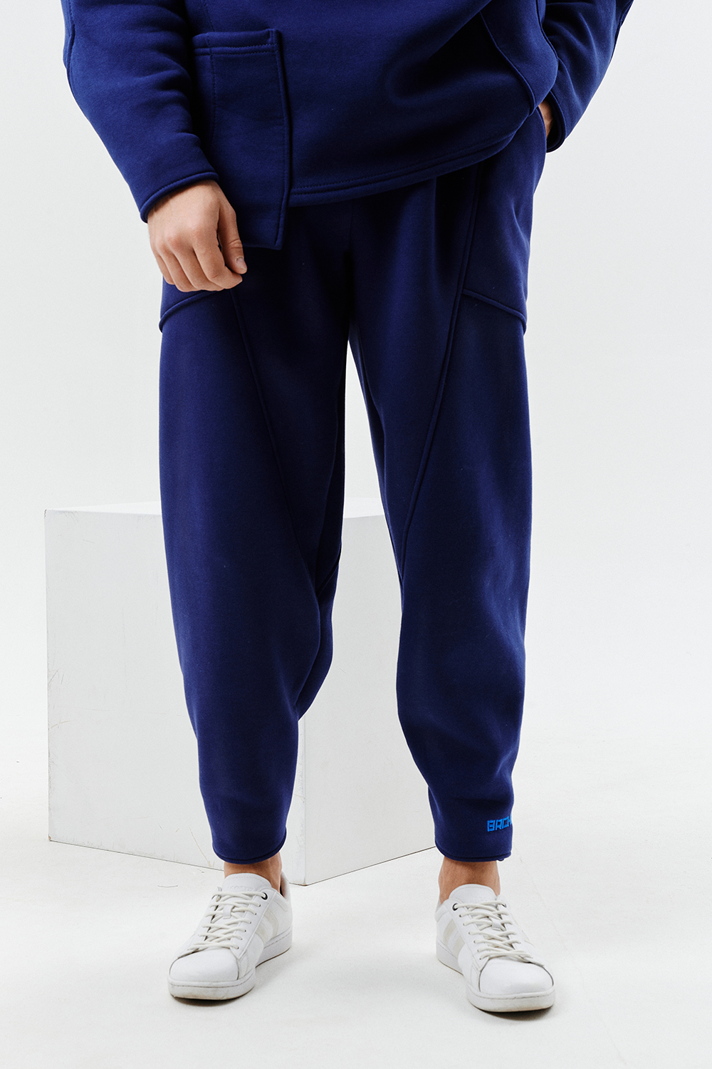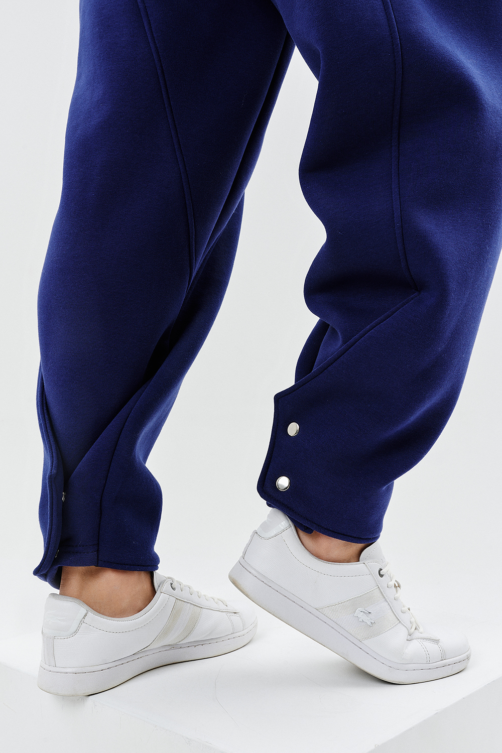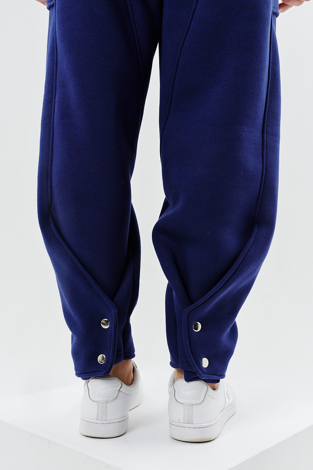 Спортивные мужские джоггеры объемного силуэта, на резинке. Сезон - осень-зима. Материал - футер с начёсом. Джоггеры с высокой посадкой на талии, также в изделии присутствуют накладные карманы, которые расположены по бокам. Спереди и сзади расположены декоративные швы. Низ левой брючины оформлен вышивкой бренда. Брючины застёгиваются на кнопку. Можно составить стильный и теплый комплект с толстовкой 7343 Цвет: синий; Материал: футер 3-х нитка с начесом;футер 3-х нитка с начесом; Состав: хлопок 70%, ПЭ 30%.