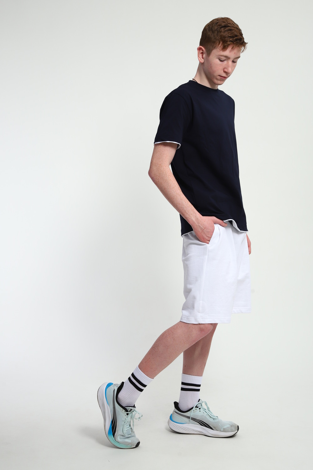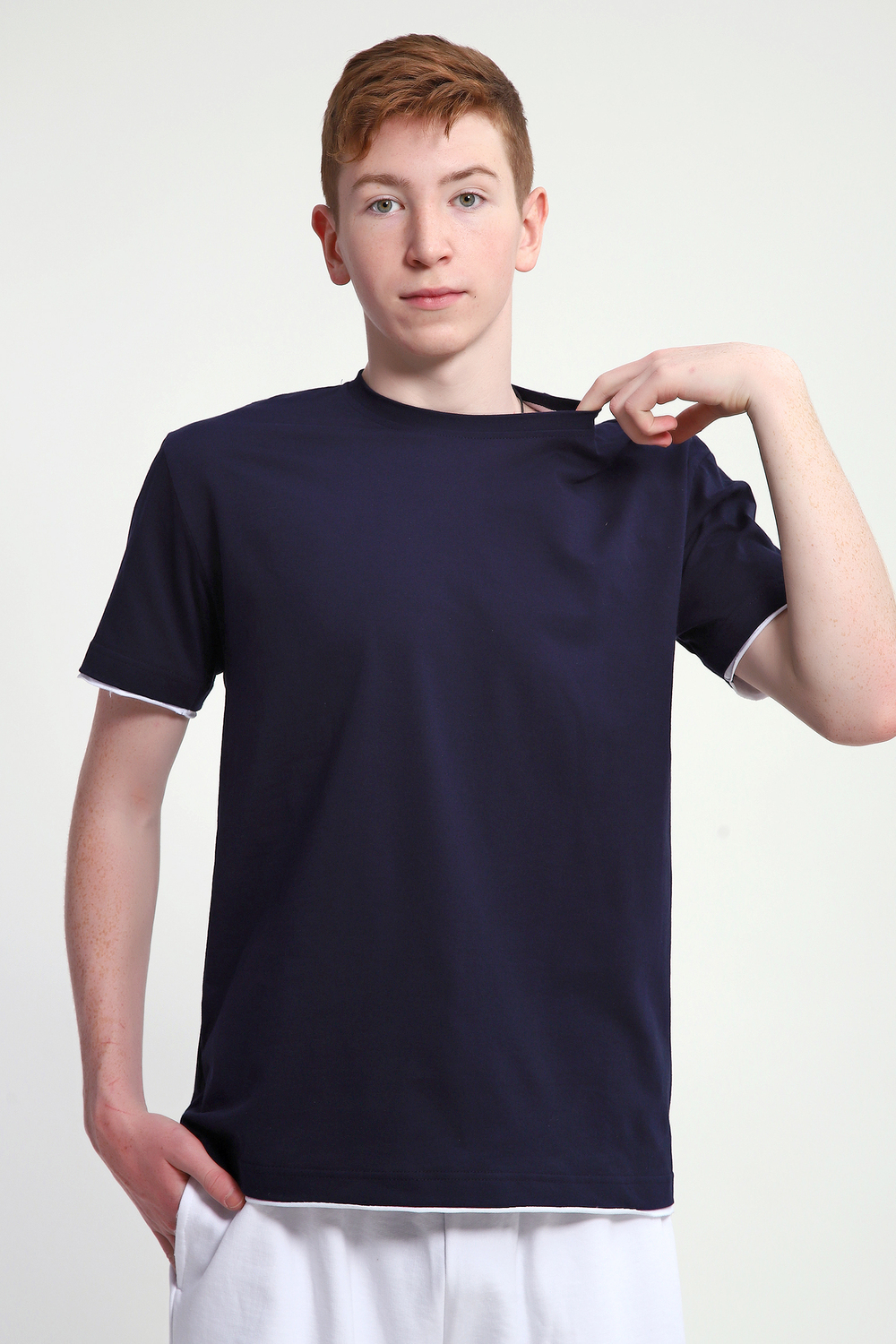 Футболка мужская выполнена из кулирки 100% хлопок. Горловина обработана обтачкой из основной ткани и х/б киперной лентой контрастного белого цвета. Низ изделия и рукава отделаны тканью контрастного белого цвета с необработанным краем. Футболка имеет комфортную посадку, отлично подойдет как для дома, так и для прогулок и спорта. Цвет: темно-синий; Материал: кулирка;кулирка; Состав: 100% хлопок.