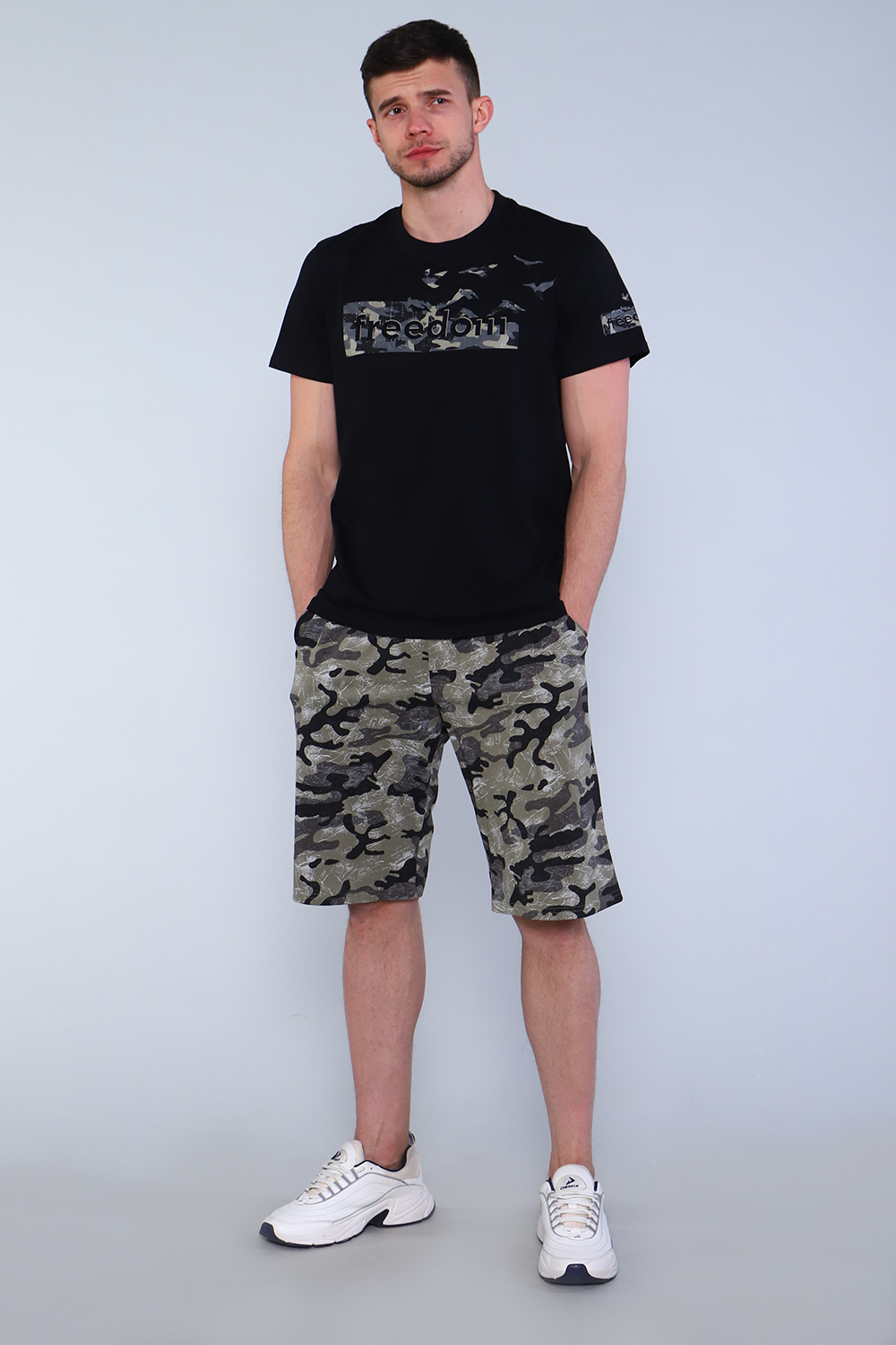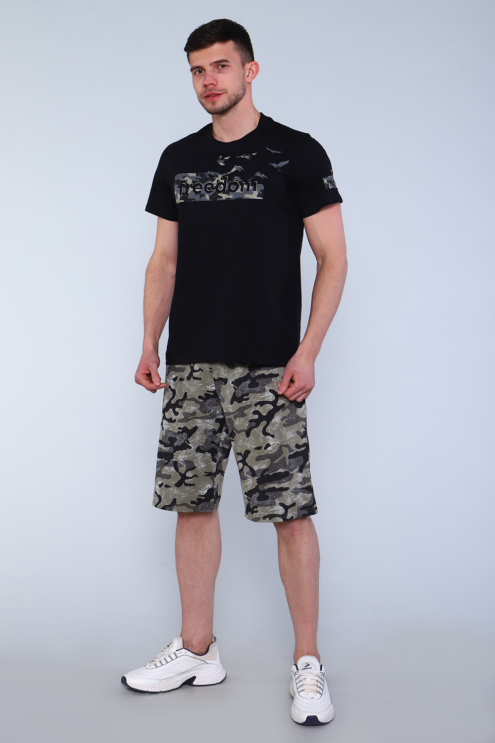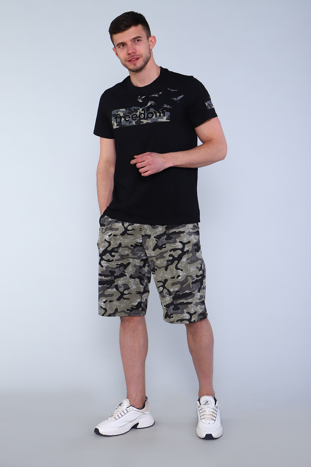 Мужской костюм выполнен из натуральной ткани 100% хлопка. Модель для повседневной, домашней носки, состоящая из шорт и легкой, свободной футболки, с коротким рукавом. Комплект костюма состоит из широкого размерного ряда, шорты имеют 2 боковых кармана, также эластичный пояс. Наш костюм выполнен так, что при носке он не будет сковывать Ваши движения, а только дарить наслаждение. Цвет: черный; Материал: кулирка;кулирка; Состав: 100% хлопок.