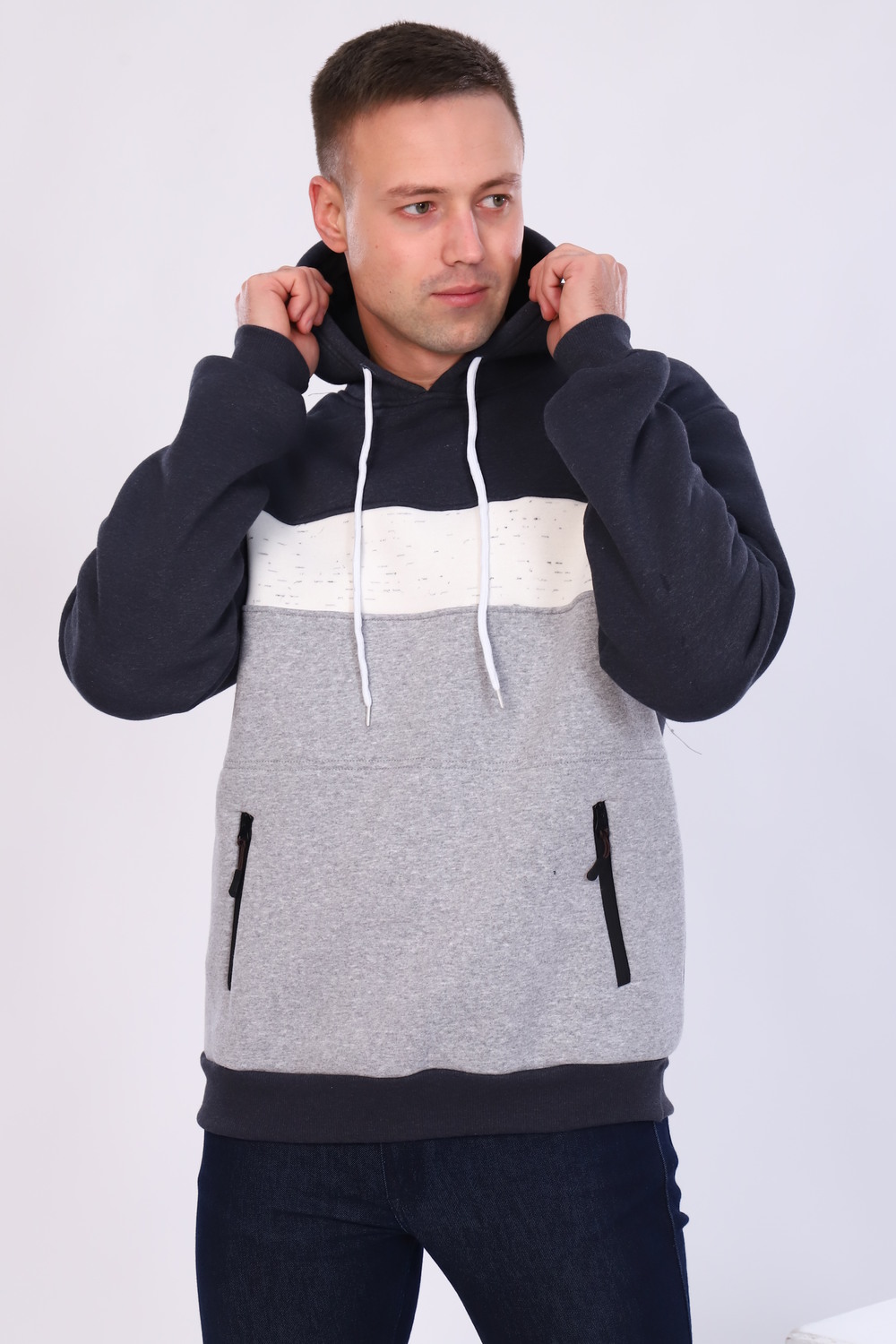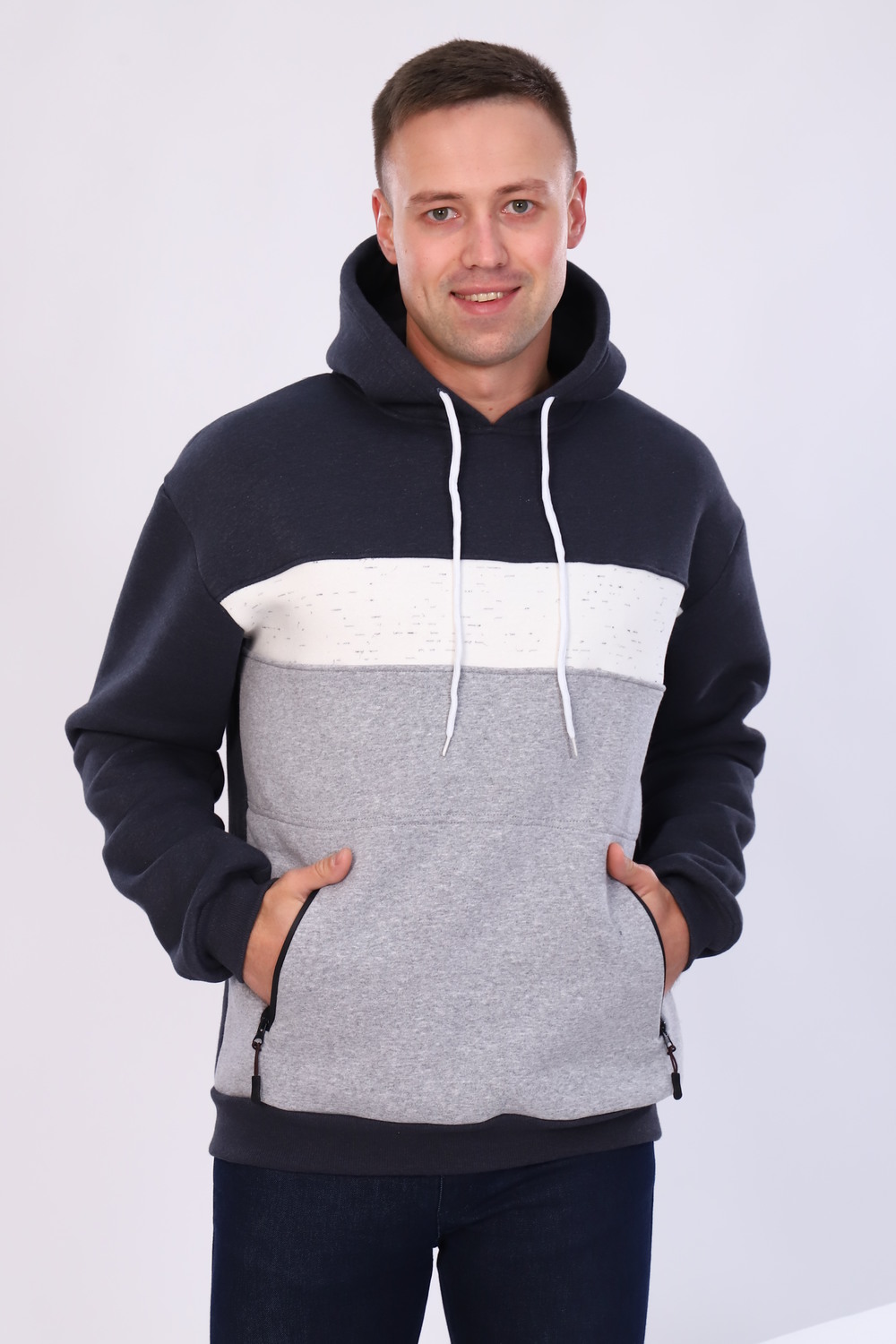 Стильная мужская толстовка с капюшоном выполнена из футера трёх нитки пенье компакт. Она имеет начес, что делает её идеальным выбором для прохладных дней. Капюшон регулируется шнурком. По бокам расположены вместительные карманы на молнии (кенгуру). Доступна в нескольких базовых расцветках с контрастными вставками по типу колор-блок. Первая стирка с изнаночной стороны при 30 градусах. При первой стирке ворс начеса полиняет. Это нормально. Цвет: серый;хаки;черный;антрацит;фумэ;серый меланж-серый;черный-серый; Материал: футер 3-х нитка с начесом;футер 3-х нитка с начесом; Состав: 65% хлопок, 35% П/Э.