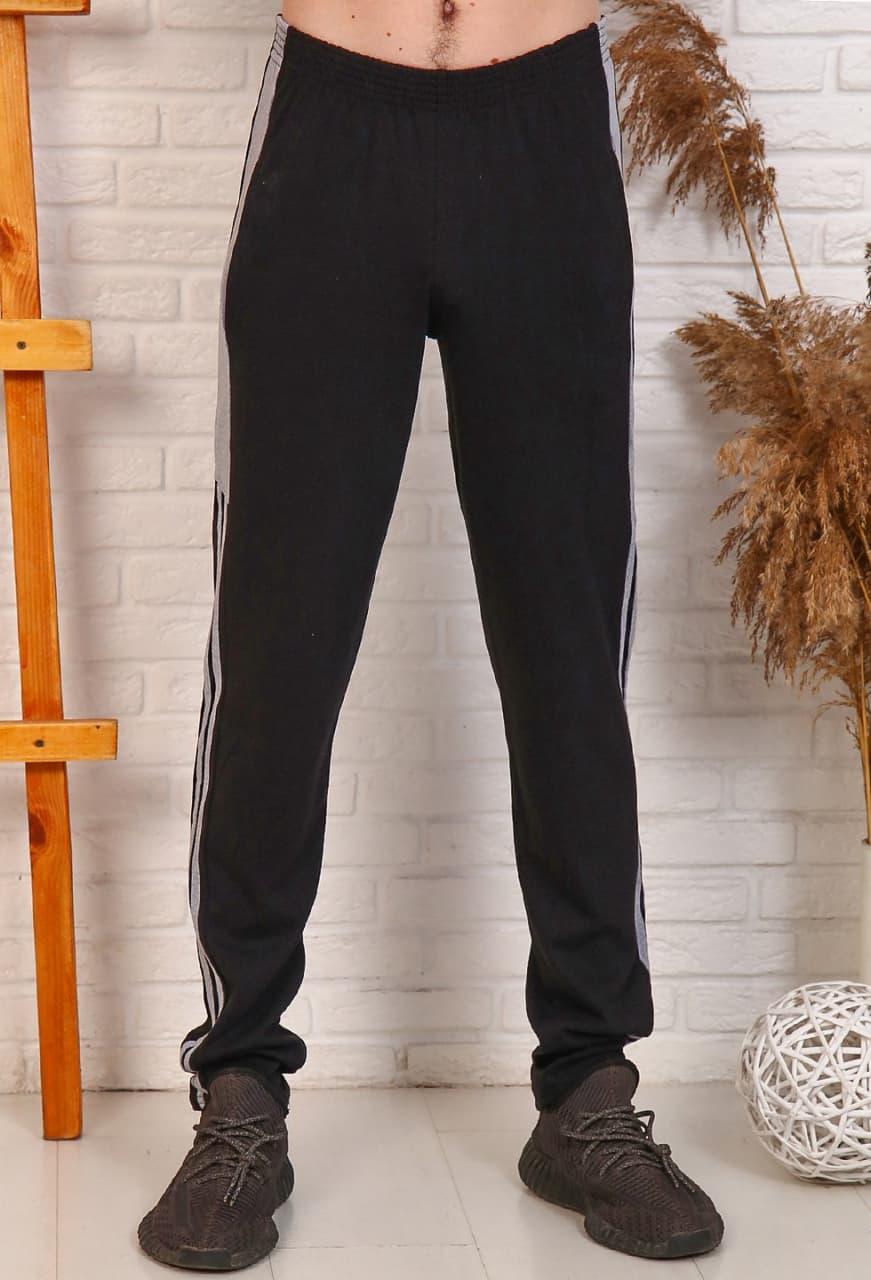 Прекрасные комбинированные спортивные брюки с втачными боковыми карманами и контрастными лампасами. Брюки выполнены из трикотажного полотна- интерлок.