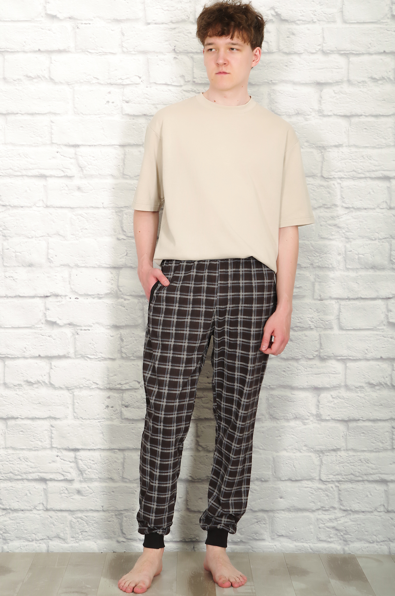 Брюки домашние, клетка (коричневый)