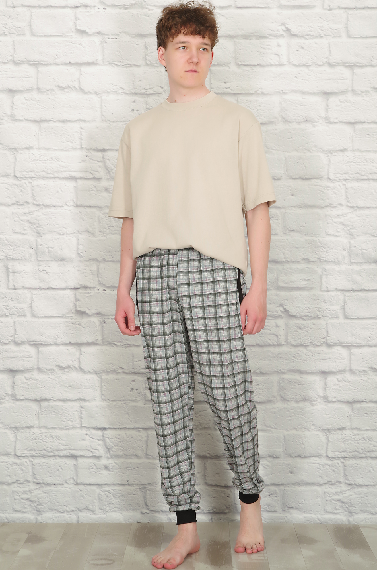Брюки домашние, клетка (серый)