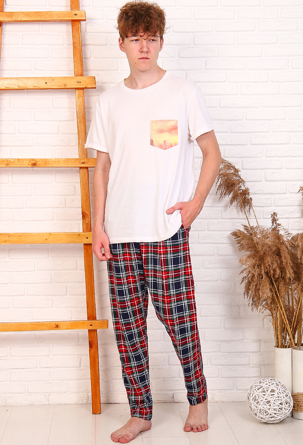 Уютные домашние хлопковые брюки зауженной модели, с боковыми карманами, пояс на резинке.