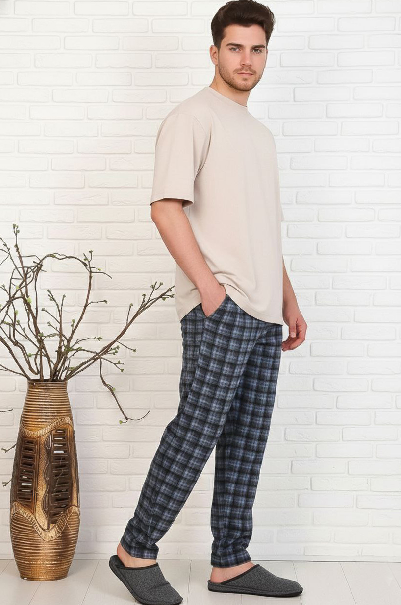 Уютные утепленные домашние брюки прямого кроя, с боковыми карманами, пояс на резинке.