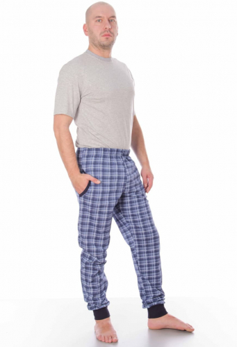 Домашние хлопковые брюки для мужчин. Модель снизу на манжете из основной ткани, удобные боковые карманы, пояс на резинке.