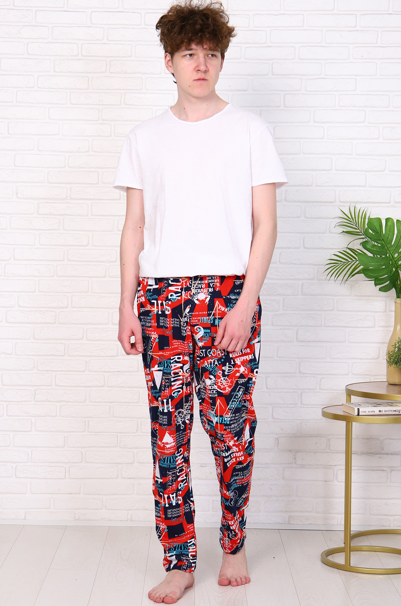 Уютные домашние хлопковые брюки зауженной модели, с боковыми карманами, пояс на широкой резинке.