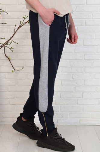 Стильные спортивные брюки для мужчин - это новинка сезона зима-осень. Модель зауженная к низу, с удобными боковыми карманами. По низу - декорированная металлическая молния - имитирует манжет. По бокам вставка из контрастной ткани делает модель более яркой и оригинальной. Ткань - мягкий и тёплый супер-футер с начёсом, плотность 320-350 г/м2.