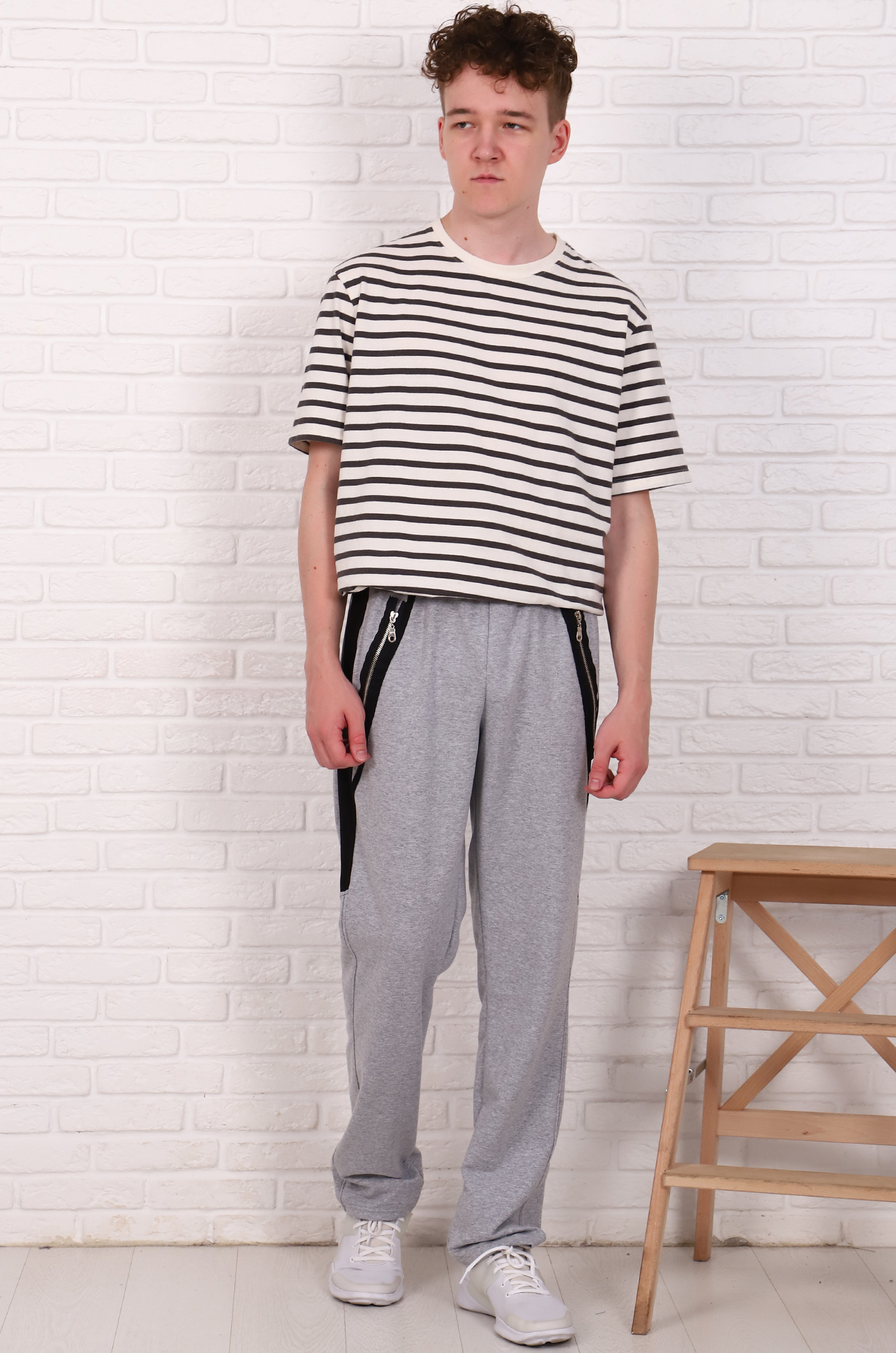 Новая стильная модель для тех, кто хочет выделяться и идёт в ногу со временем! Брюки прямого фасона с удобными боковыми карманами из практичного и износостойкого футера с лайкрой. Комбинированные вставки по бокам и металлические молнии добавляют модели оригинальности! Пояс на широкой резинке и шнурке.