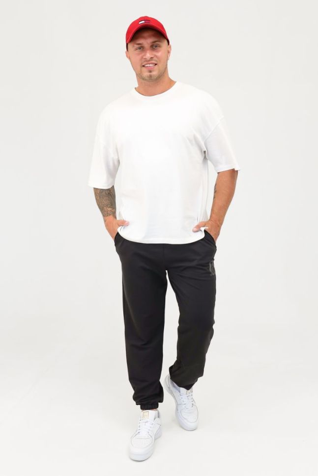 Ткань: футер 2-х нитка; Состав: хлопок 72%, полиэстер 20%, лайкра 8%; Сезонность: зима, весна, лето, осень; Стиль: спортивный; Праздники: 23 февраля; Застежка: без застежки; Карман: с карманами; Производство: г. Иваново, швейное производство НАТАЛИ; Тип изделия: брюки; Цвет: черный
