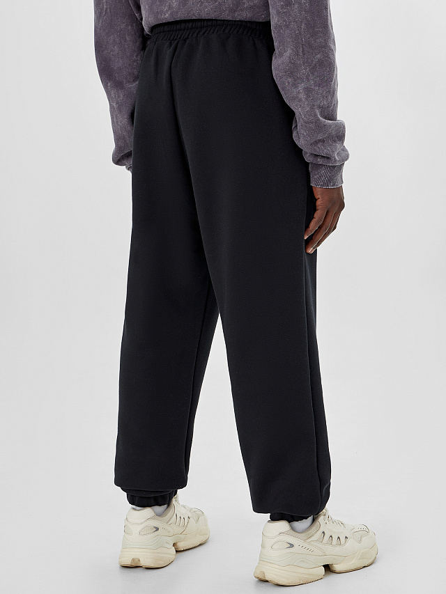 Брюки из трикотажного футера с теплым подчесом. Силуэт свободный. Линия талии классическая. Сидение немного спущено. Есть удобные боковые карманы. Пояс с эластичной тесьмой и регулировочным шнурком-затяжкой. Низ брюк подогнут, с эластичной тесьмой. Удобные брюки – рекомендуем!
