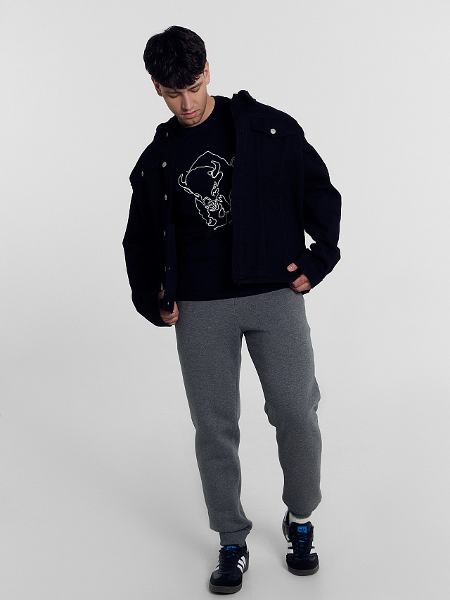Стильные брюки из трикотажного футера с теплым подчесом. Силуэт зауженный, штанины с манжетами. Есть удобные боковые карманы. В поясе – эластичная тесьма и шнурок-затяжка. Просто, комфортно, актуально!