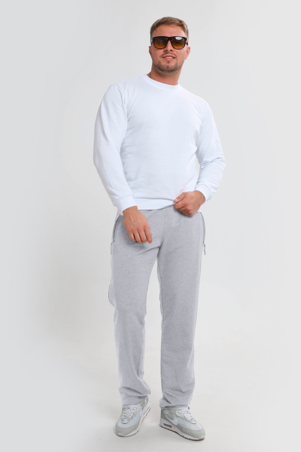 Мужские, спортивные брюки прямого кроя, пояс на резинке со шнурком внутри, средняя посадка, два кармана на молнии, на карманах декоративная вышивка. Материал держит форму, не скатывается. Ткань 2-х нитка компакт пенье. Отлично подойдут для занятий спортом, для повседневной носки.