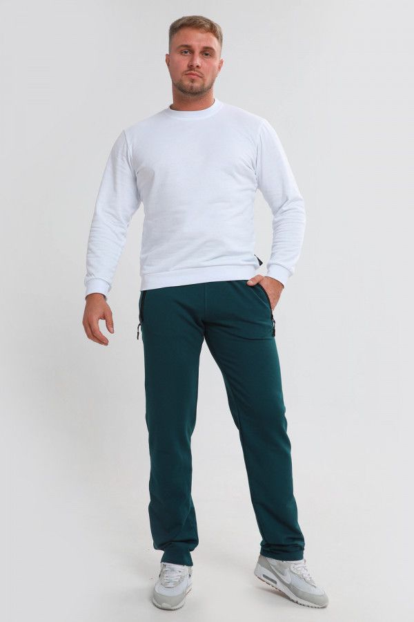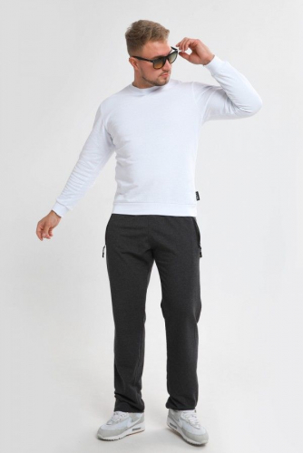 Мужские спортивные брюки прямого кроя, пояс на резинке - средняя посадка. Два боковых кармана на молнии с вставкой из плащевки. Материал держит форму, не скатывается. Подойдут для повседневной носки, для занятий спортом.