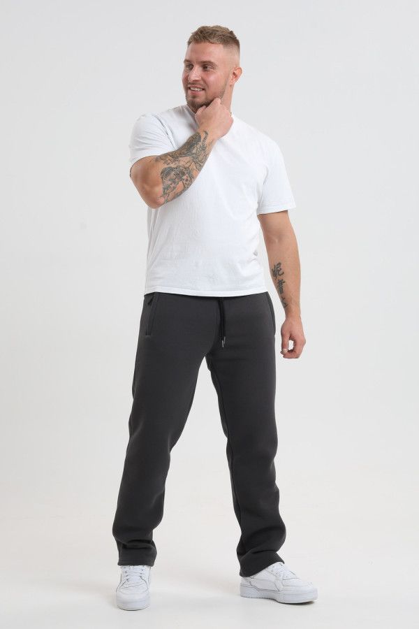 Базовые спортивные брюки с начесом прямого кроя, с двумя карманами на молнии, пояс на резинке со шнурком, сзади декоративный шов. Штаны изготовлены из высококачественной ткани, не скатываются, не вытягиваются и отлично держат форму. Подойдут для повседневной прогулки, для спорта на открытом воздухе.