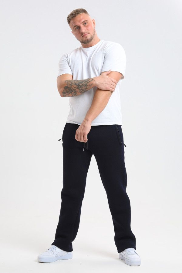 Базовые спортивные брюки с начесом прямого кроя, с двумя карманами на молнии, пояс на резинке со шнурком, сзади декоративный шов. Штаны изготовлены из высококачественной ткани, не скатываются, не вытягиваются и отлично держат форму. Подойдут для повседневной прогулки, для спорта на открытом воздухе.