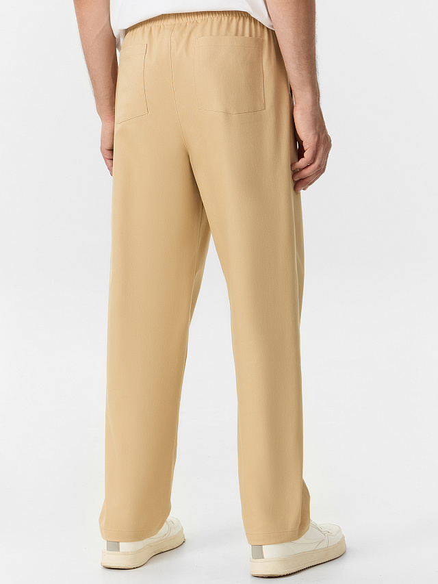 Мужские брюки прямого кроя со средней посадкой — это универсальная модель, сочетающая в себе комфорт, практичность и современный стиль. Эластичный пояс обеспечивает удобную посадку без давления, а имитация гульфика на передней части добавляет визуальную структуру и завершенность образу. Боковые карманы делают модель функциональной, позволяя удобно разместить необходимые мелочи. Нижние срезы аккуратно обработаны швом вподгибку, что подчеркивает качество пошива и сохраняет форму изделия при носке и стирке. Смесовый эластичный хлопок в составе ткани обеспечивает мягкость, воздухопроницаемость и легкую растяжимость, благодаря чему брюки комфортны в течение всего дня и не сковывают движений.