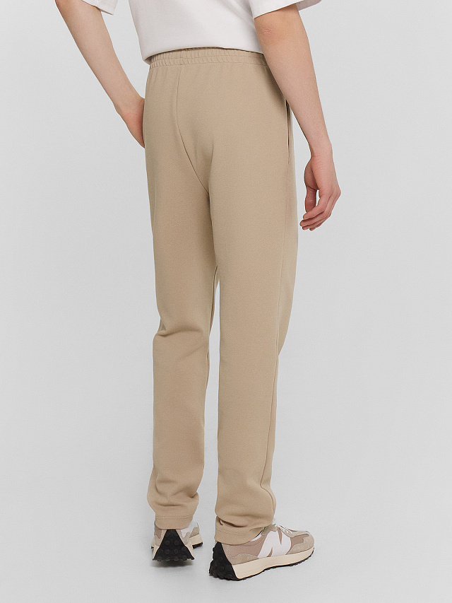 Мужские брюки с классической линией талии, выполненные из высококачественного интерлока. Этот материал обеспечивает превосходный комфорт и долговечность, делая изделие идеальными для повседневной носки. Силуэт прямой, штанины немного заужены к низу, что придает современный и стильный вид. В поясе эластичная тесьма и регулировочный шнурок-завязка обеспечивают идеальную посадку и комфорт. А удобные боковые карманы добавляют функциональности и практичности. Дополните образ подходящей толстовкой для завершения стильного и спортивного образа.