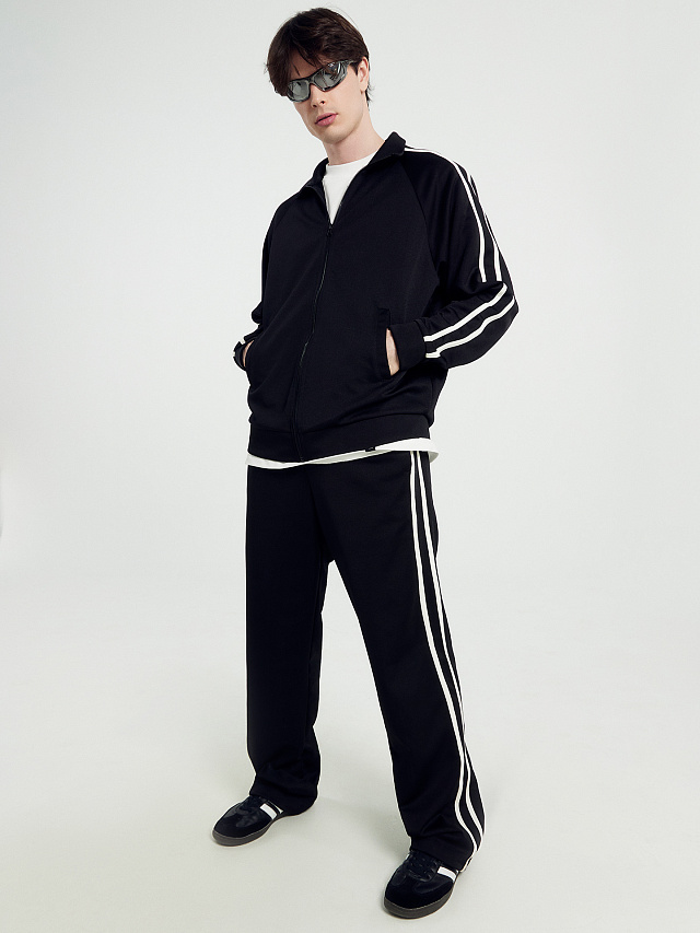 Брюки мужские черные со светло-молочными лампасами