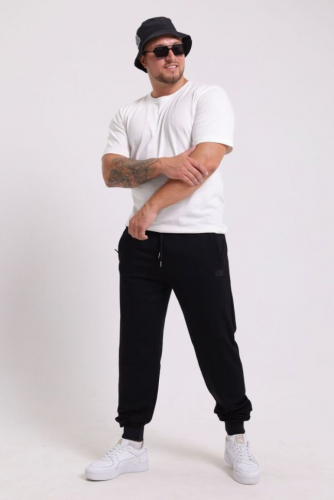 Ткань: футер 2-х нитка; Состав: 72% хлопок, 20% полиэстер, 8% эластан; Производство: г. Иваново, швейное производство НАТАЛИ; Тип изделия: брюки; Цвет: черный