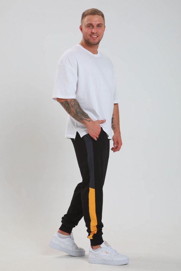 Спортивные стильные брюки с лампасами, высокого качества из турецкой ткани. Пояс на резинке, по бокам два кармана на молнии, низ на манжетах. Отлично подходят для домашней и спортивной носки, сохраняя форму и не скатываясь после многочисленных стирок.