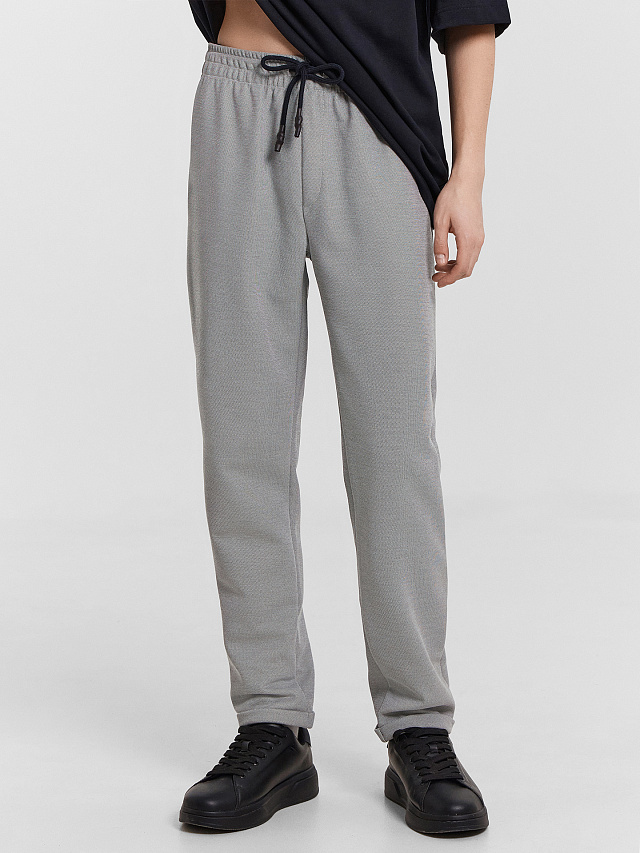 Мужские брюки из интерлока – идеальное сочетание комфорта и стиля. Эта модель прямого силуэта, слегка зауженная к низу, подчеркивает современный и актуальный дизайн. Пояс с эластичной кулиской обеспечивает оптимальную посадку и комфорт в течение всего дня. Карманы в боковых швах добавляют практичности и функциональности, а отвороты на низу брюк придают завершенный и стильный вид. Эти брюки станут отличным дополнением к вашему повседневному гардеробу, позволяя выглядеть элегантно и уверенно в любой ситуации.