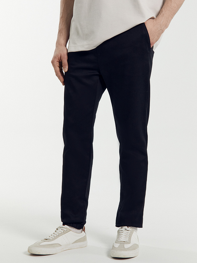 Стильные брюки мужские из высококачественного хлопка. Модель прямая, посадка средняя. Пояс отрезной из основного полотна с эластичной тесьмой внутри. С внешней стороны пояса пробиты петли и втянут шнур. На левой передней половинке отстрочена декоративная строчка - имитация гульфика. В боковых швах выполнены карманы-хулиганы. Подкладка кармана из основного полотна. По низу - отрезные манжеты с эластичной тесьмой внутри. Сзади есть карман. Удобные и комфортные брюки для повседневной носки. Помогут в создании модных городских образов. Широкий размерный и цветовой ряд. Рекомендуем!