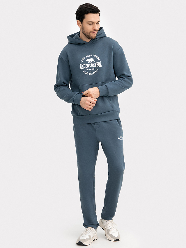 Прямые свободные мужские брюки. Выполнены из легкого трикотажного футера с подчесом. Пояс – с эластичной тесьмой внутри и шнурком-завязкой, который позволяет регулировать ширину в талии. Есть удобные боковые карманы. Гульфик – не функциональный. Брюки снизу подогнуты. Стильные и комфортные брюки мужские для ежедневной носки. Натуральный материал в составе позволяет использовать данные брюки в любое время года. Дополнить можно стильным верхом на свой вкус. Брюки удобные и практичные, хорошо подойдут на любой тип мужской фигуры. Рекомендуем!