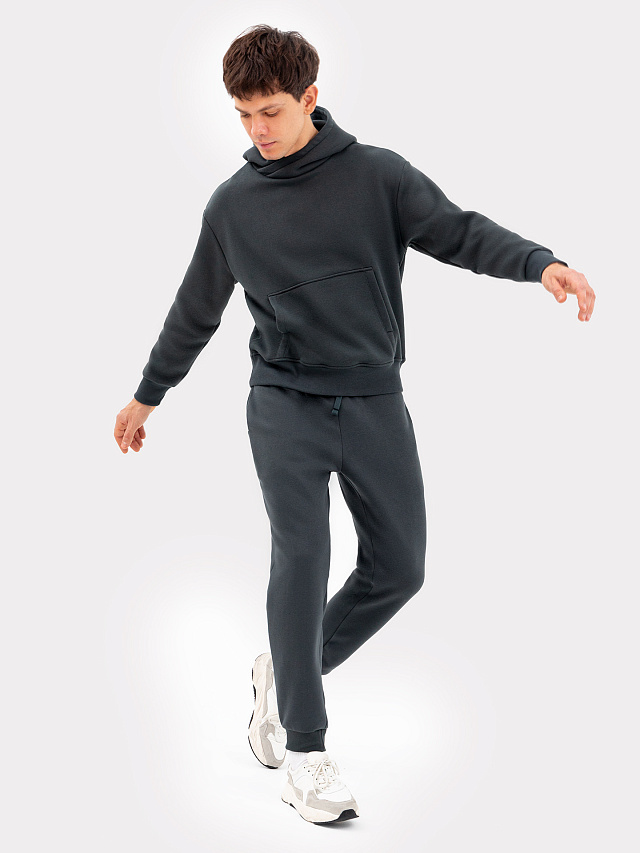 Стильные брюки из трикотажного футера с теплым подчесом. Силуэт зауженный, штанины с манжетами. Есть удобные боковые карманы. В поясе – эластичная тесьма и шнурок-затяжка. Просто, комфортно, актуально!