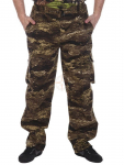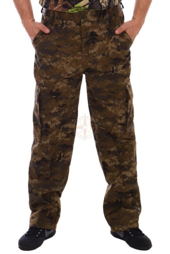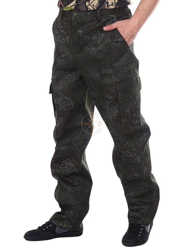 Брюки прямые на притачном поясе, на спинке собраны эластичной резинкой. На поясе имеются шлевки для ремня. Брюки оснащены двумя карманами по бокам и двумя фигурными карманами с клапанами на кнопках. Гульфик застегивается на пуговицы. Стрелки на передних половинках визуально "стройнят" силуэт. Изделие широко используется в качестве одежды для сотрудников охранных структур, а также в качестве одежды для туризма, рыбалки и других видов активного отдыха. Рекомендации по уходу: изделие прекрасно носится и не теряет своей привлекательности. Рекомендуемая температура для ручной и машинной стирки t до 40С° с применением мягких моющих средств. Изделие запрещено хлорировать и отбеливать!