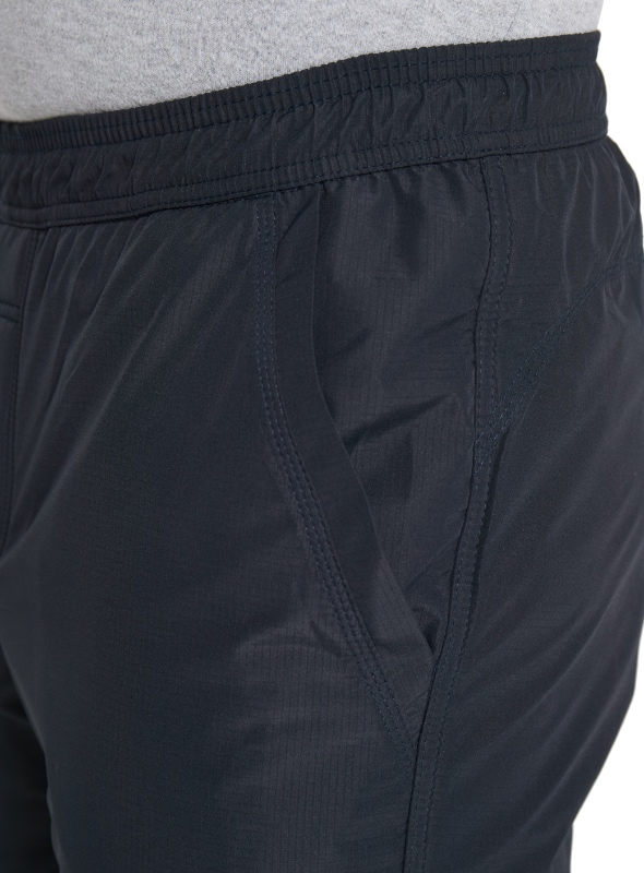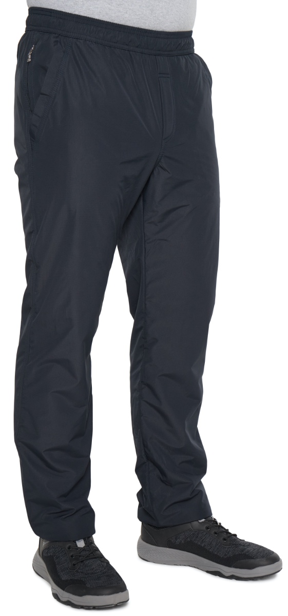 Зимние брюки с поясом на резинке. С внутренней стороны пояс фиксируется шнурком. Наружная ткань мягкая, приятная на ощупь, имеет в своём составе армирующие нити, придающими ей дополнительную прочность и создают фактурный рисунок в виде мелких квадратов. Не грубеет на морозе. Ламинированное покрытие на внутренней стороне ткани обеспечивает защиту от ветра и влаги. Утепляющая подкладка из плотного флиса на трикотажной основе не вытягивается, держит форму, а благодаря антипиллинговой обработке не скатывается даже после многочисленных стирок. Брючины немного заужены книзу. Имитация гульфика. Передние карманы прямые открытые, отстрочены вдоль линии входа. У входа в правый передний карман параллельно боковому шву расположен дополнительный вертикальный карман на молнии в «рамку. Сзади кокетка.