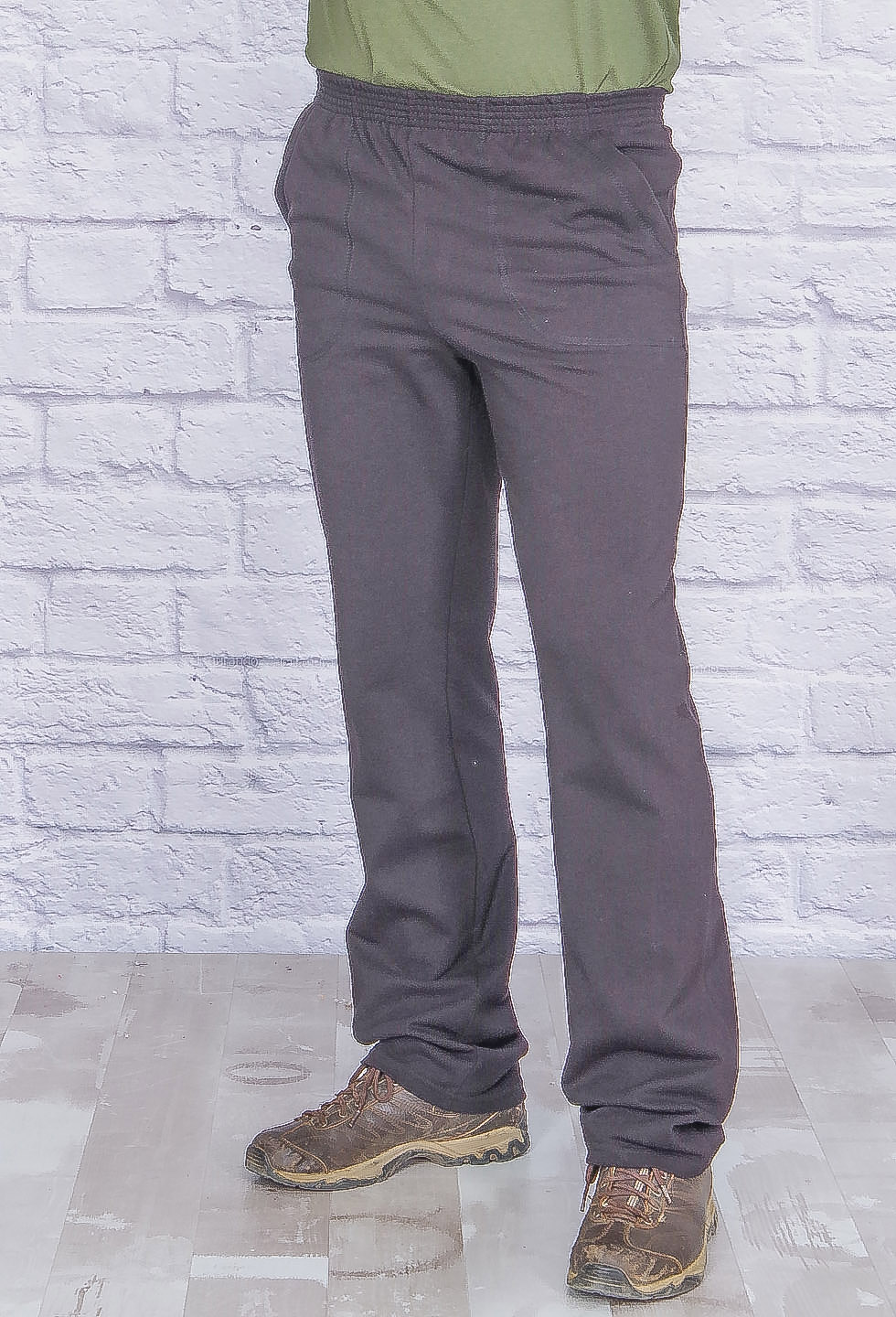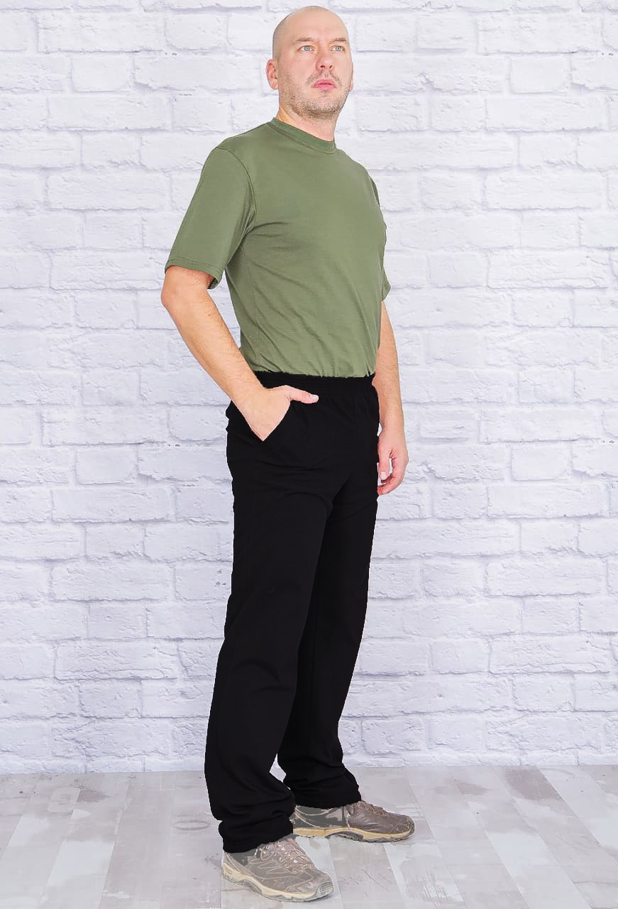 Брюки мужские из трикотажа с боковыми карманоми и поясом изготовленном на специальной машине. Брюки прямого фасона, выполнены из трикотажного полотна - пике.