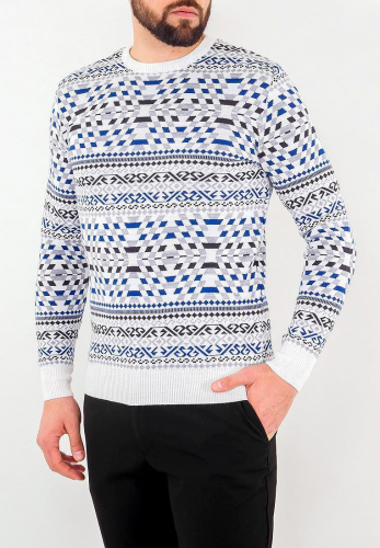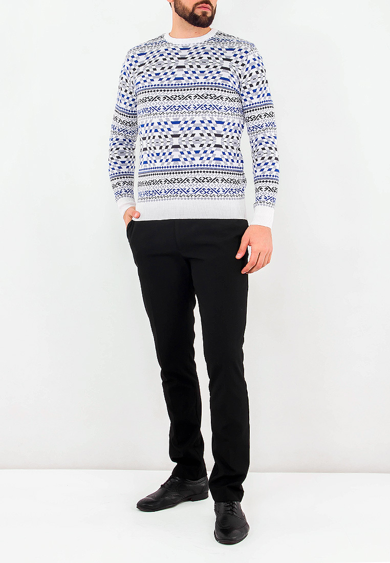 Цвет: Синий Рисунок: Трикотаж с д..показатьизайном Состав: 70% шерсть 30% акрил Модель: Классическая Ворот: Круглый Силуэт: Прямой силуэт / Сlassic fitизайном