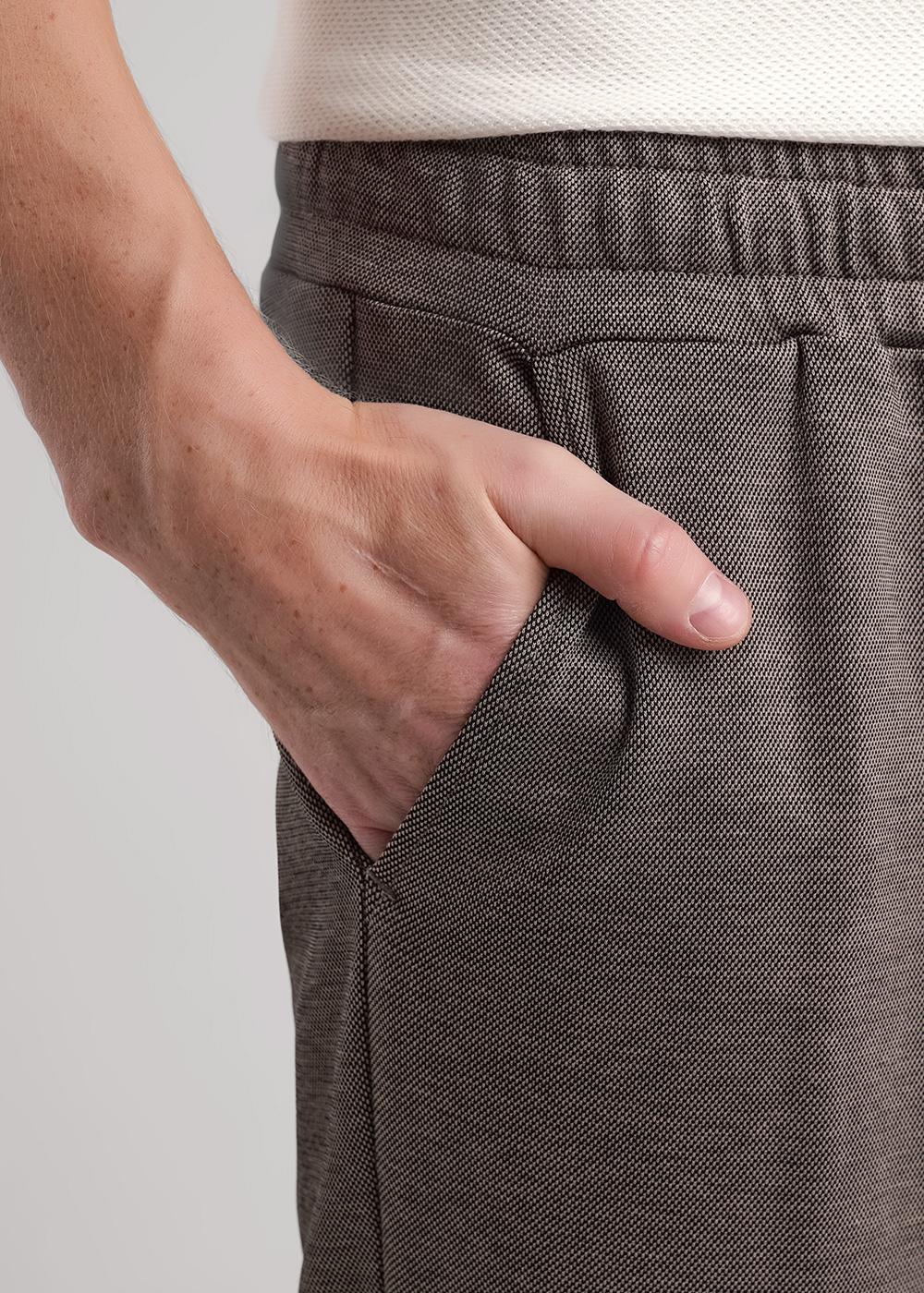 "Описание: Прямые мужские зауженные брюки из трикотажного полотна с небольшой фактурой. Функциональность модели придают боковые карманы и регулируемая талия. Брюки износостойкие и устойчивые к деформации. Хорошо подходят для повседневного гардероба.