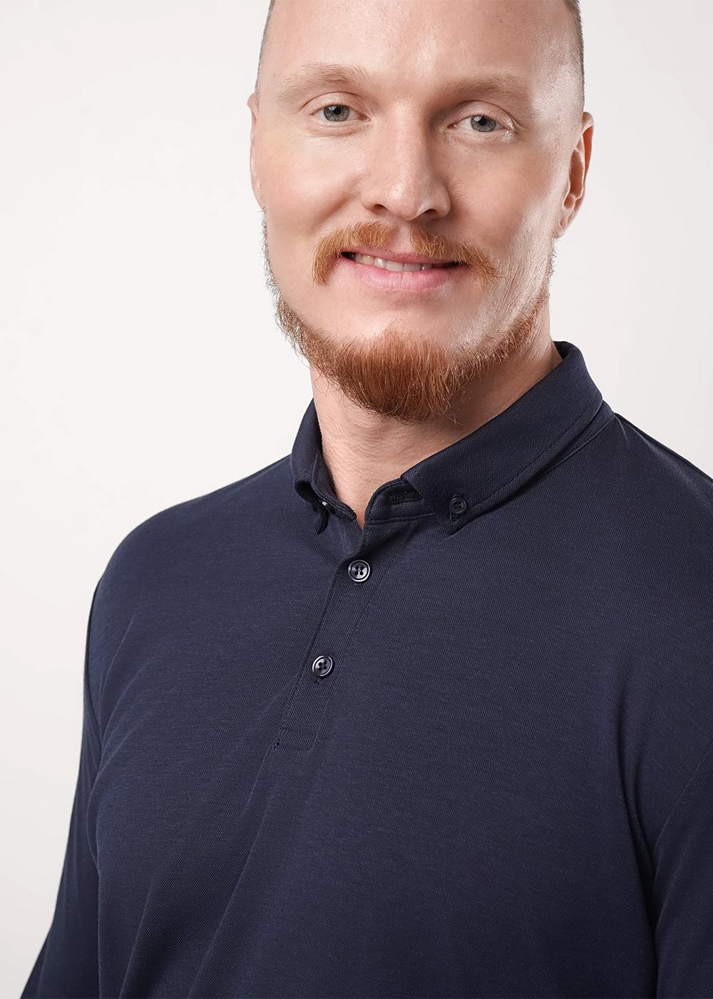"Описание: Рубашка-поло с длинным рукавом. Изделие выполнено из трикотажного полотна с кроеным отложным воротником. Модель дополнена имиджевой фурнитурой. Такая рубашка-поло отлично сочетается с брюками или джинсами.