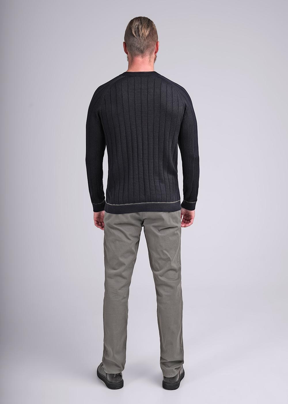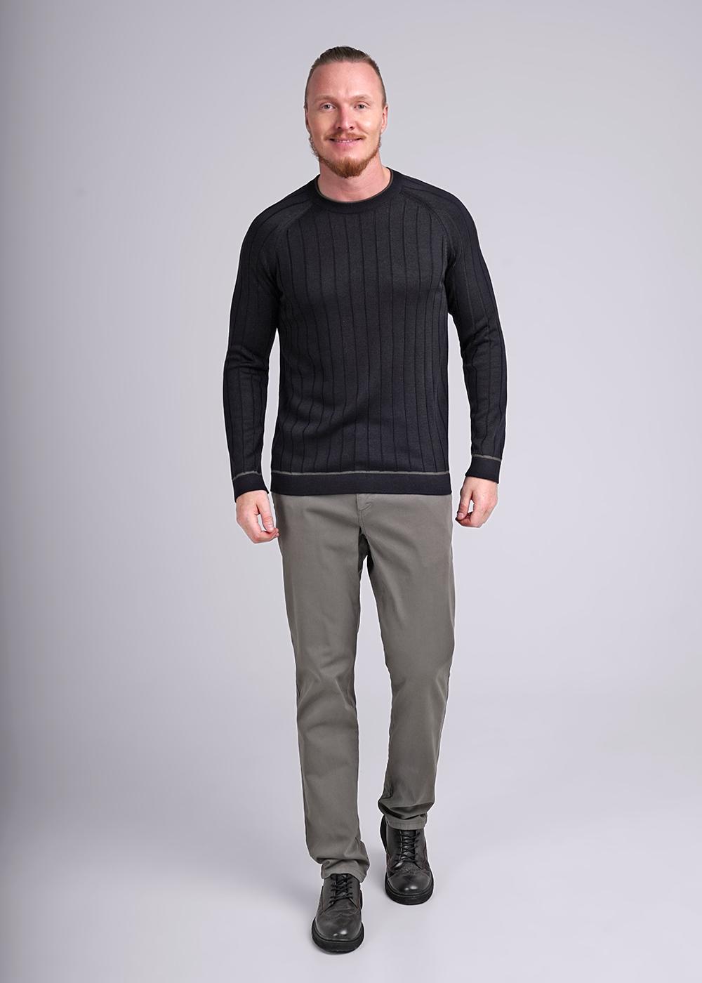 "Описание: Мужской вязаный джемпер с круглым вырезом горловины и длинным рукавом реглан. Изделие выполнено из смесовой пряжи с добавление вискозы. Модель не сковывает движений и обеспечивает удобную посадку, подойдет к любому образу.