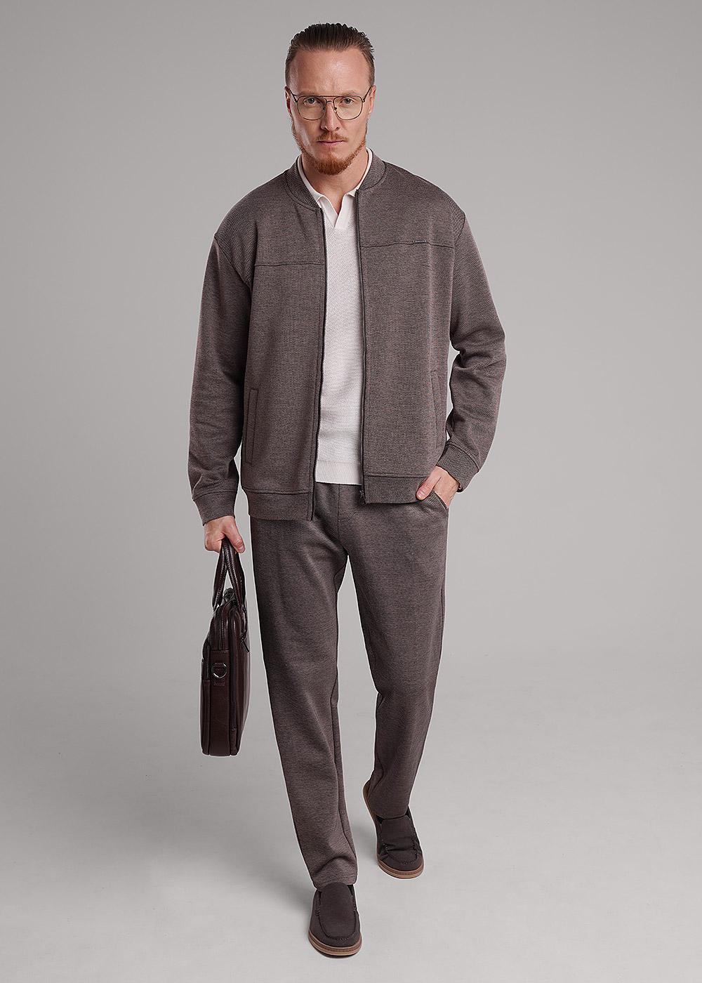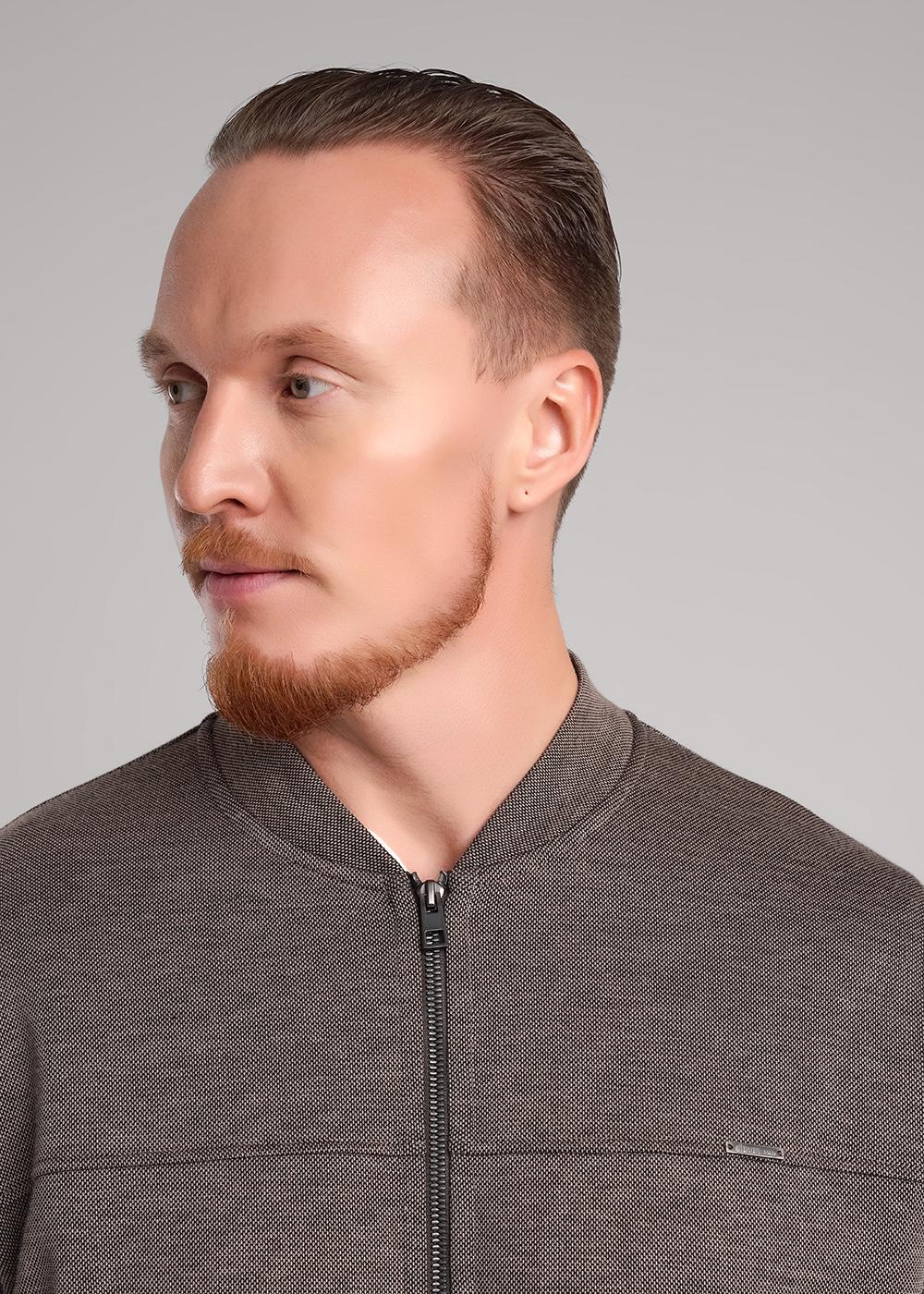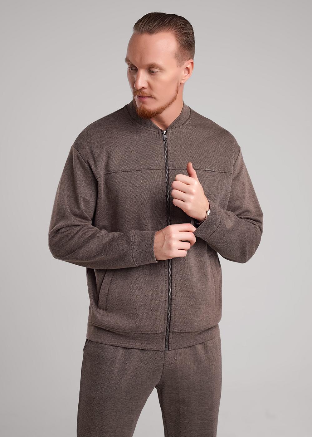 "Описание: Мужской бомбер на молнии с воротником-стойкой, боковыми карманами и манжетами. Декорирован имиджевой фурнитурой. Стильная и удобная модель для повседневных образов.
