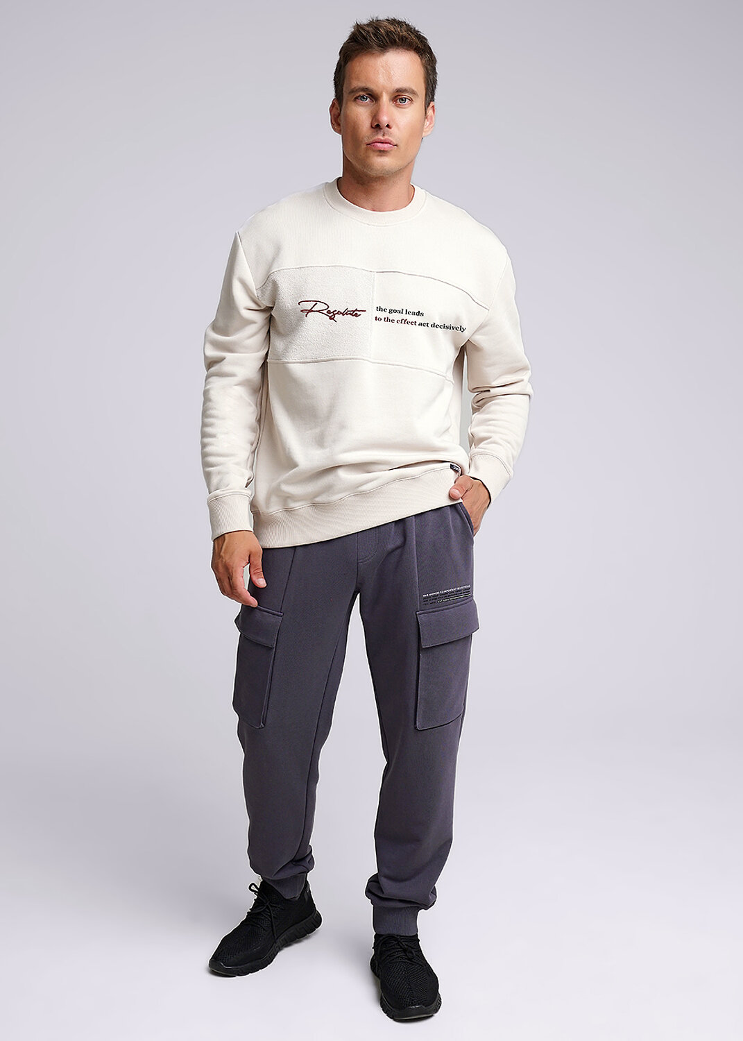 Брюки на манжете по низу из плотного трикотажного полотна "футер" с широким поясом и шнуром. Для функциональности предусмотрены боковые карманы и накладные. Брюки в стиле Sport Casual составят отличный комплект к бомберу и футболке.