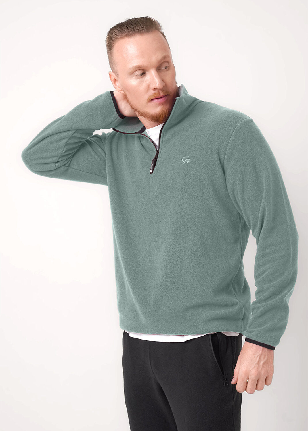 Мужская толстовка выполнена из мягкого теплого флиса. Воротник-стойка и укороченная застежка на молнию будут максимально защищать от ветра и холода. Модель дополнена имиджевой вышивкой и контрастной фурнитурой.