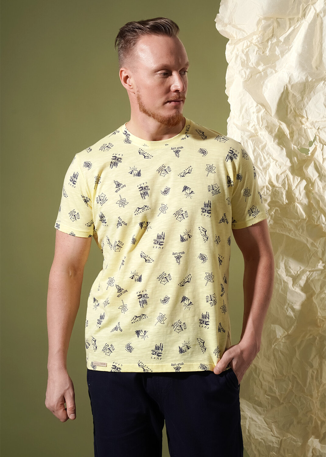 Футболка из дышащего хлопкового фактурного полотна "флам" с округлой горловиной. Модель с абстрактно-шрифтовой набивкой. Прекрасно впишется в гардероб и подойдёт к любому низу. В данной футболке можно отправиться на работу или прогулку с друзьями.